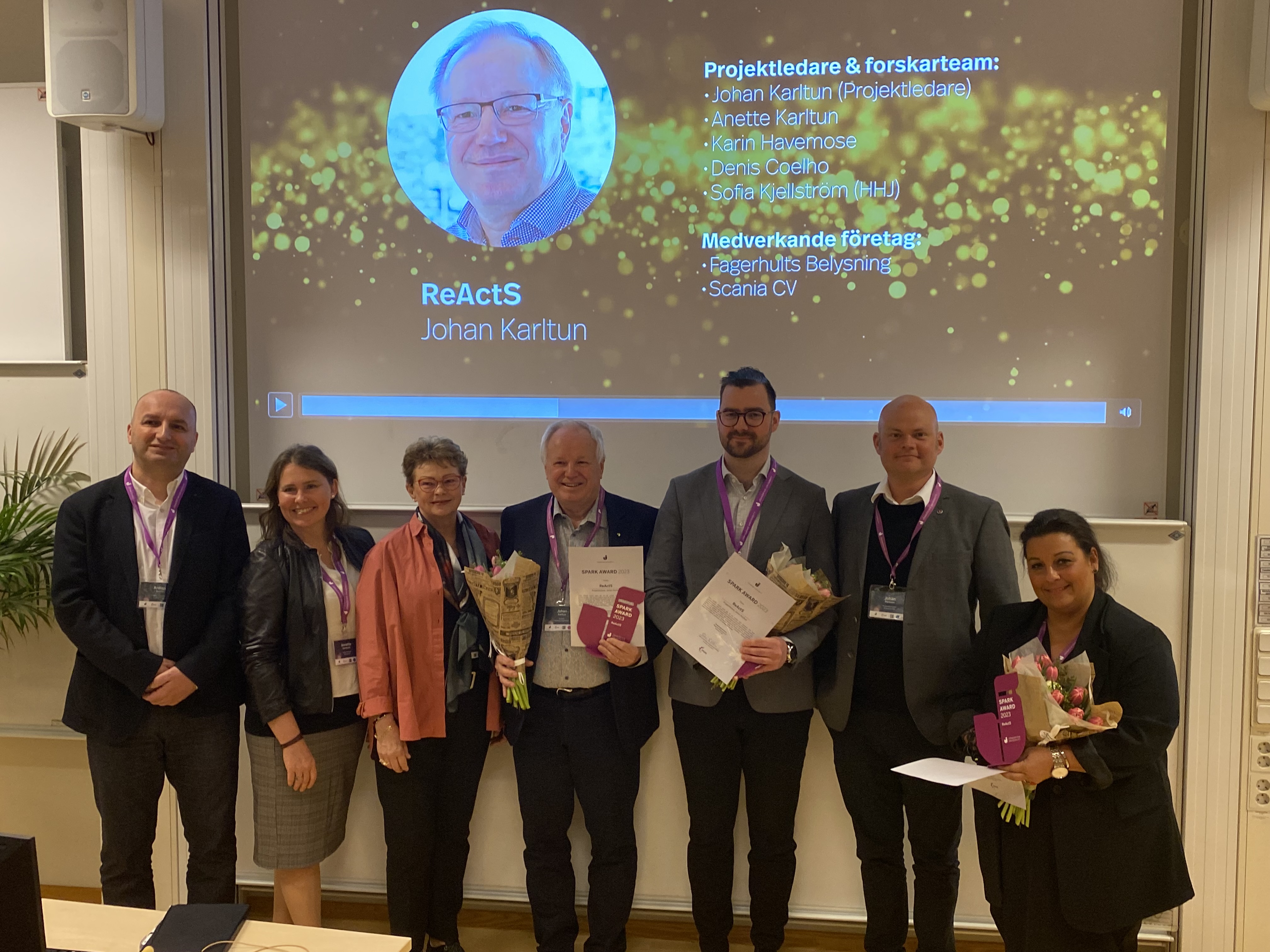 Vinnare av SPARK Award 2023 är projektledare Johan Karltun med projektet ReActS. Medverkande företag är Fagerhults Belysning AB och Scania CV.