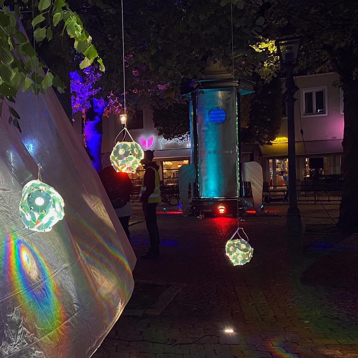 - Det var fantastiskt och jag kände en enorm stolthet över att få visa upp våra installationer för allmänheten. Flera besökare gjorde skuggfigurer eller dansade framför våra armaturer, vilket tillförde en lekfullhet och gav liv till de olika platserna, säger Sara Liljeström, student på ljusdesignprogrammet.