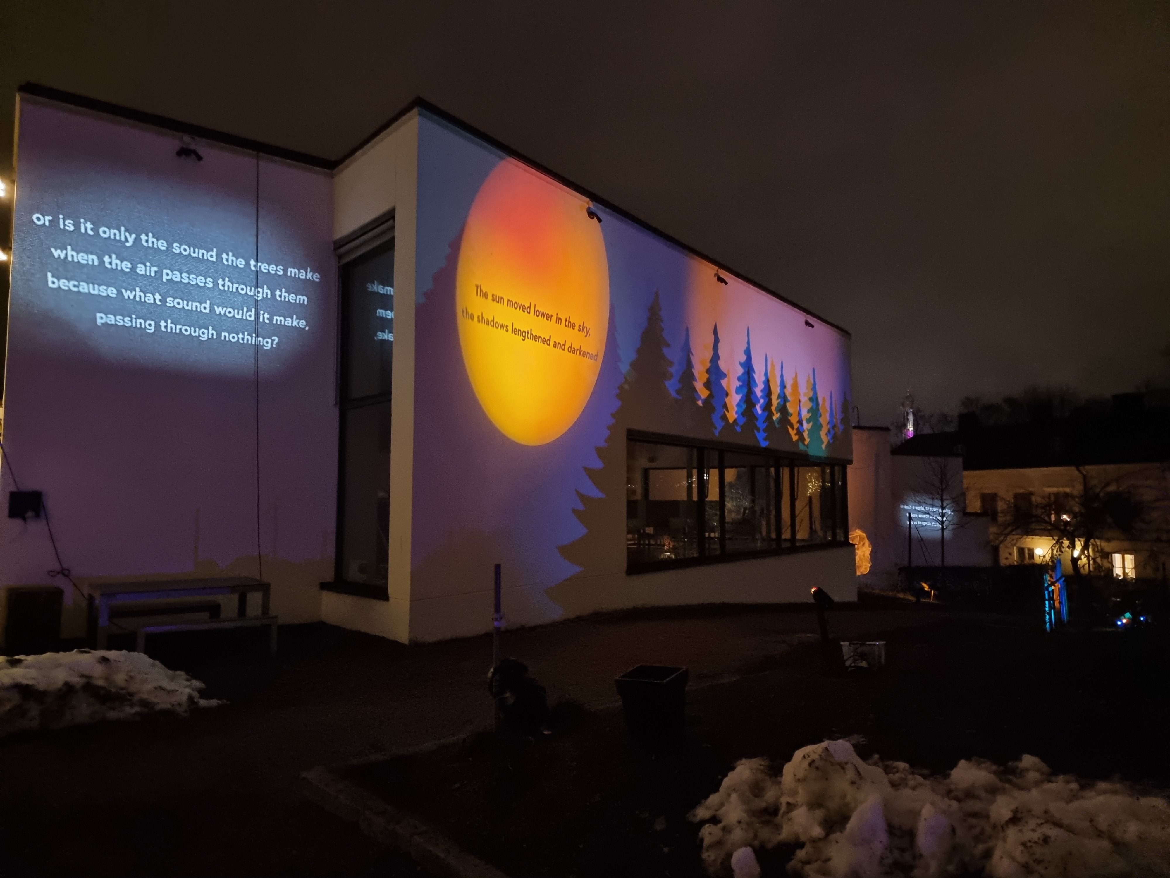 Med bland de 22 ljusinstallationerna finns bidragen ”Perspective” och ” Divina Proportione Louise” från JTH. Båda med kopplingar till Louise Glück, Nobelpristagare i litteratur 2020.