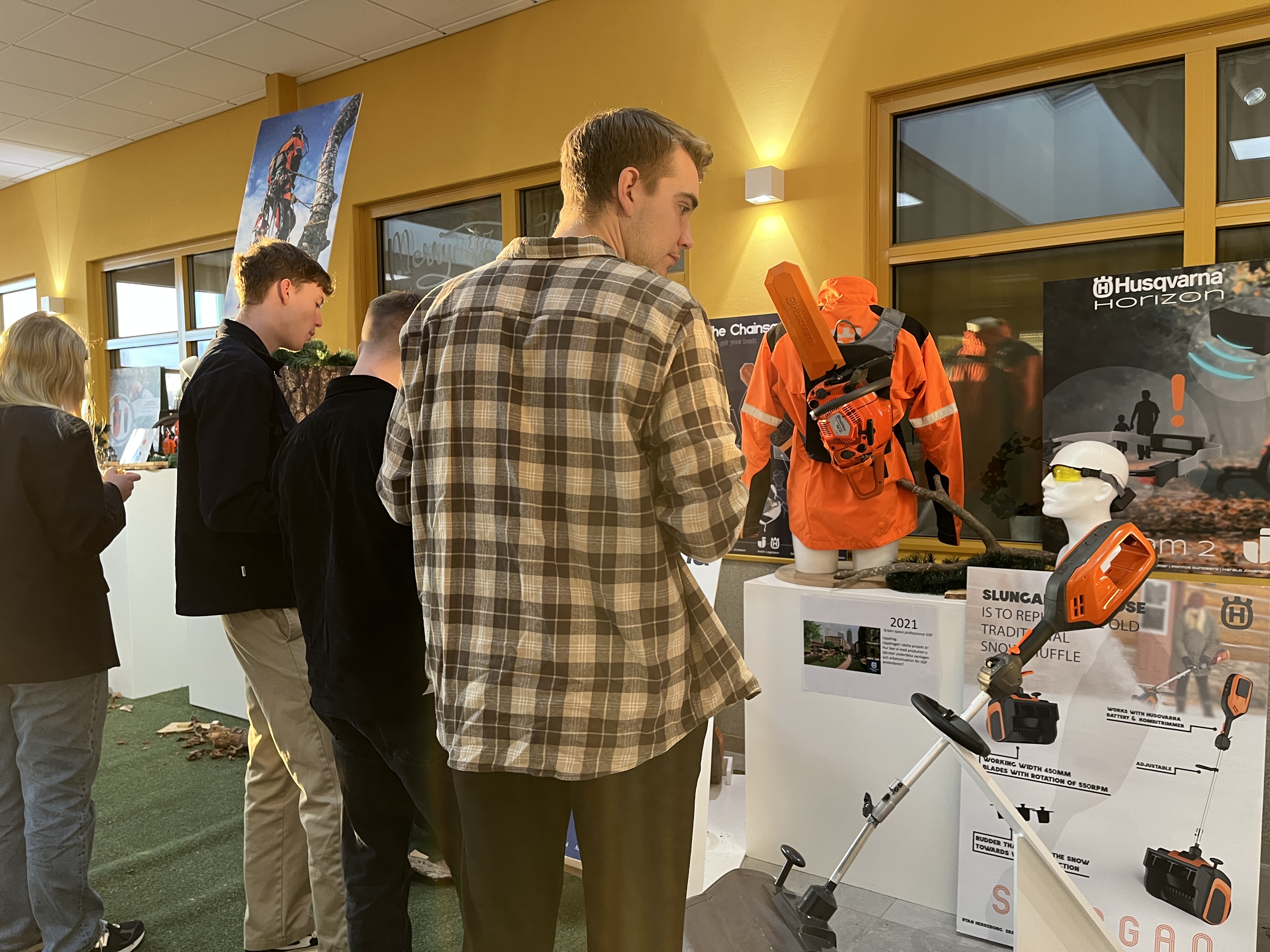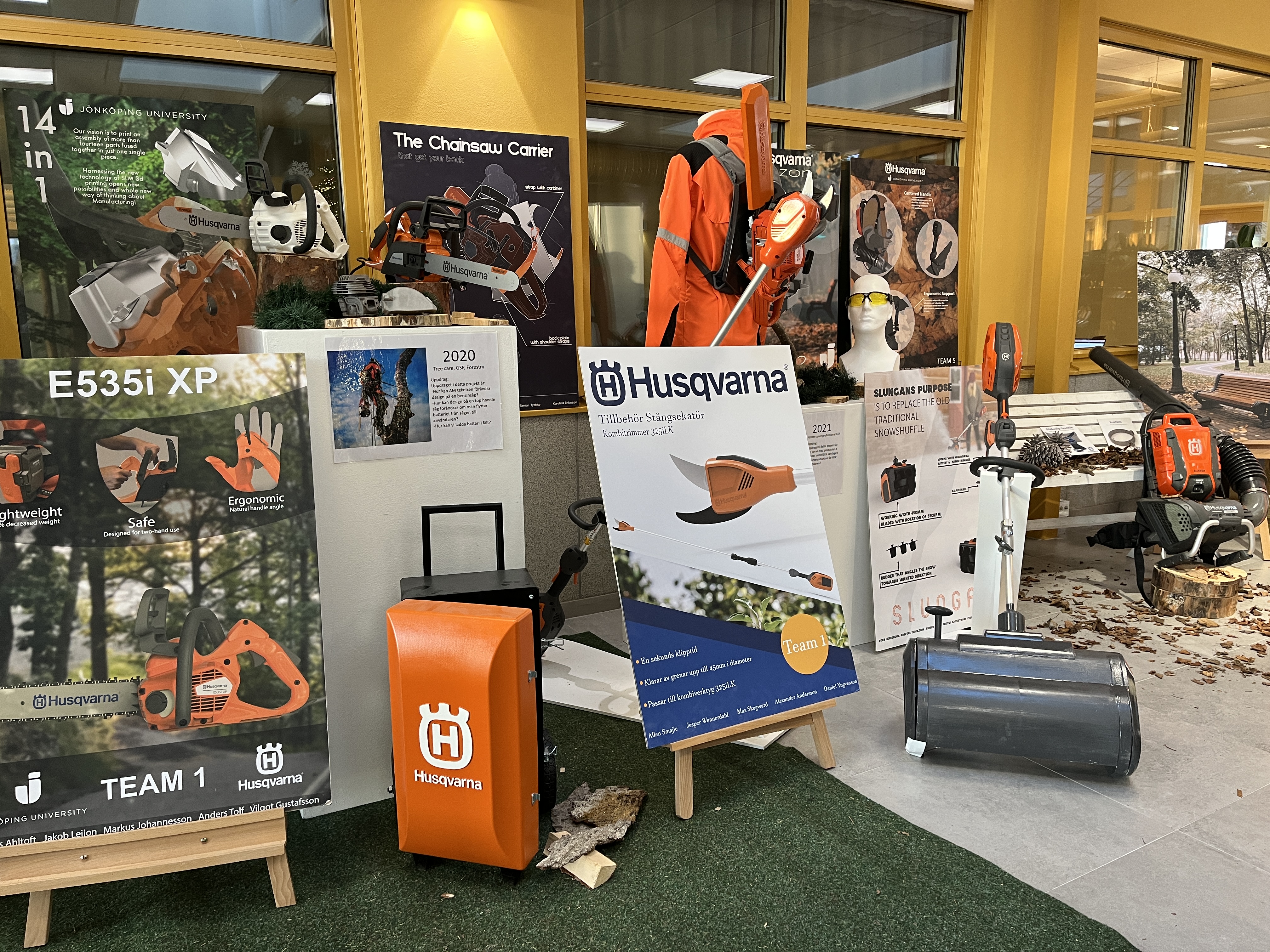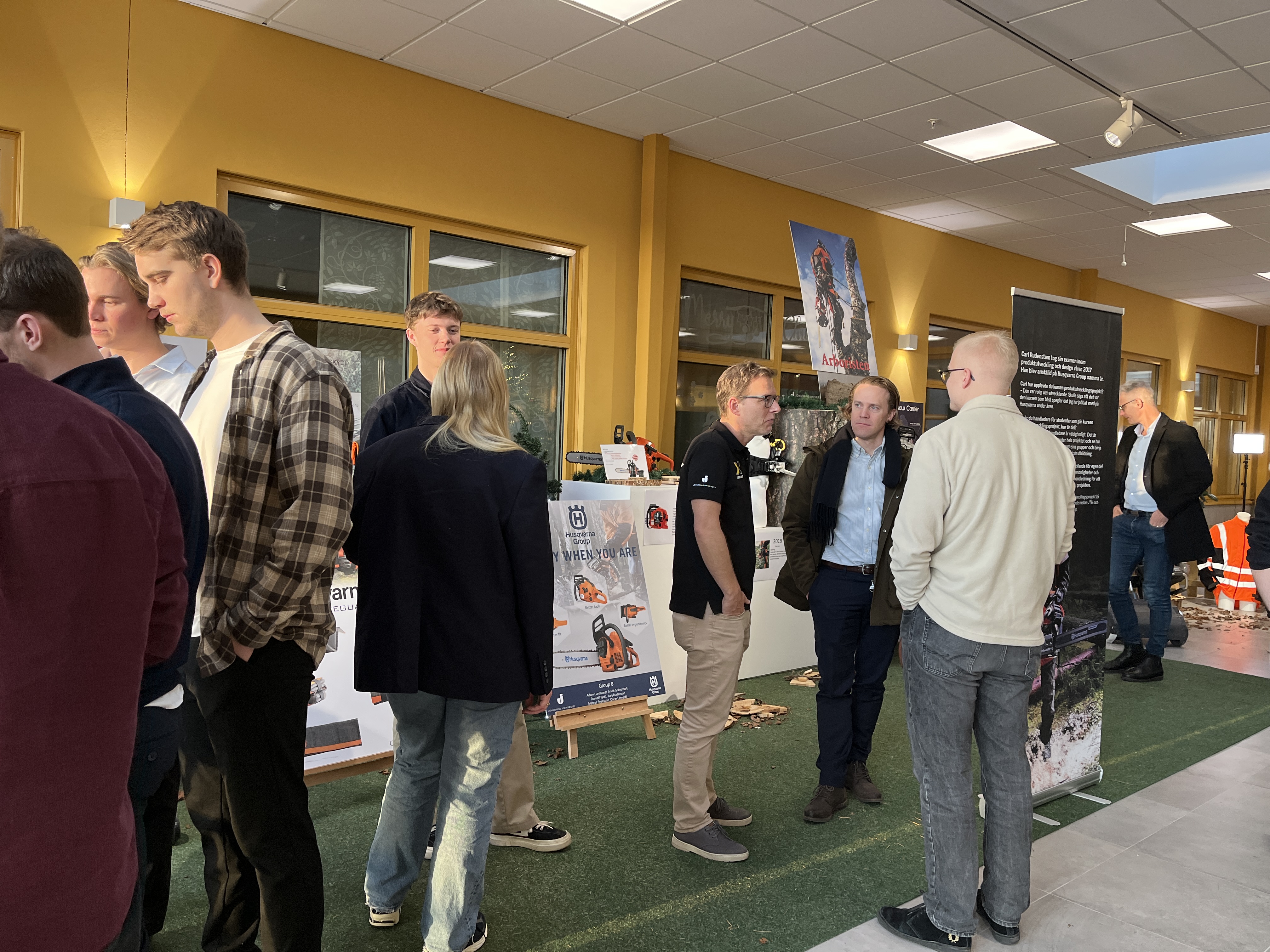 Vi livesände under drygt 20 minuter från utställningen av Husqvarnakursen på vårt Linkedin-konto där vi intervjuade personal från Husqvarna Group, en student och Conny Larsson, universitetsadjunkt i industridesign på JTH. Han är kursansvarig för Husqvarnakursen på JTH, som egentligen heter Produktutvecklingsprojekt. Det är studenter som läser Maskinteknik: Produktutveckling och design på JTH som utvecklar prototyper tillsammans med Husqvarna.