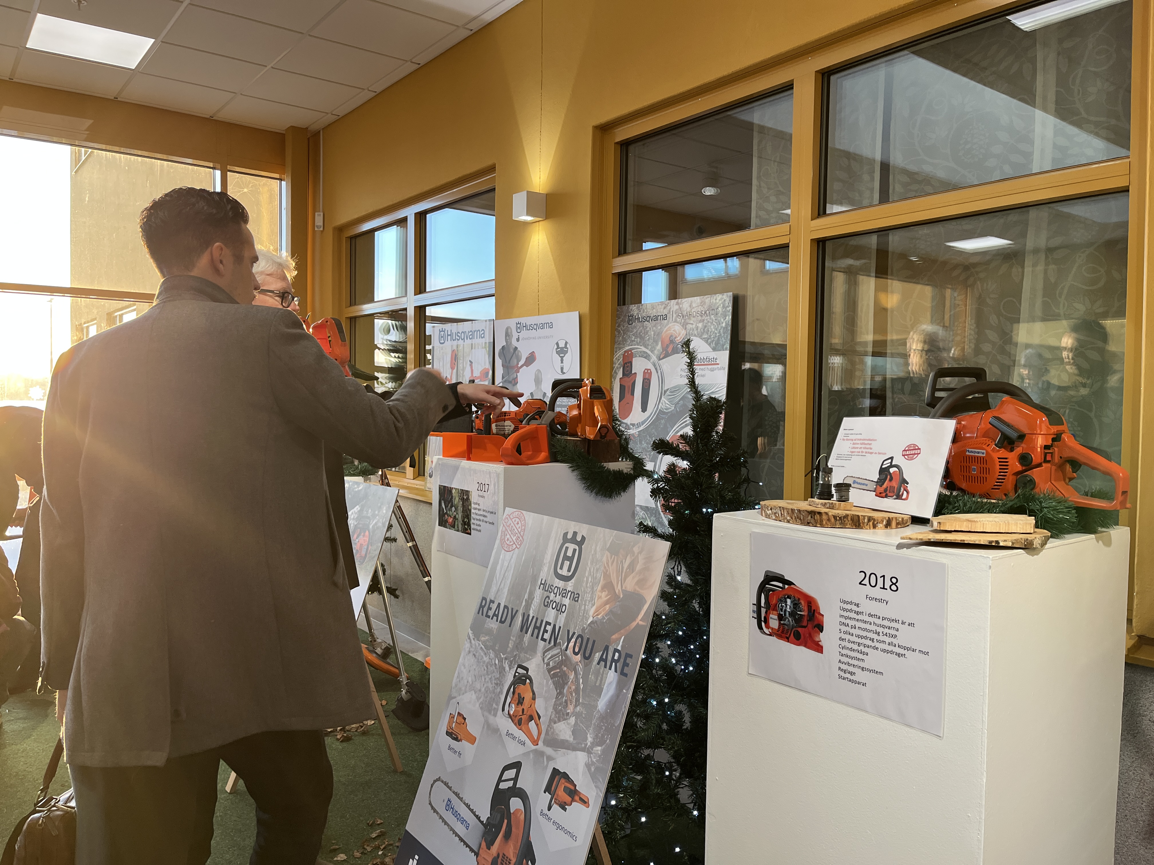 Den 16 december var det utställning av Husqvarnakursen på Tekniska Högskolan (JTH) vid Jönköping University (JU). Då visades prototyper upp, som JTH-studenter har utvecklat eller vidareutvecklat i samarbete med Husqvarna. Här nedan ser ni ett bildspel och vår direktsändning från utställningen.