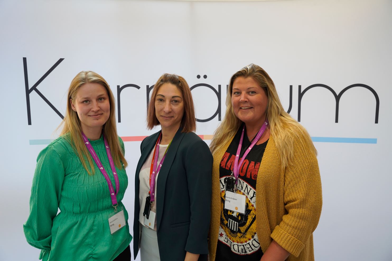 JTH-studenten Alicia Liu i samtal med Emil Persson och Jonna Bragd från Saab Training Systems.