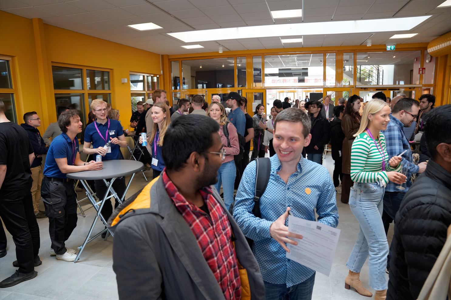 Cirka 75 studenter och omkring 50 företagsrepresentanter nätverkade på mingeleventet Pre-Karriärum som hölls i galleriet på Tekniska Högskolan (JTH) vid Jönköping University (JU) den 2 maj.