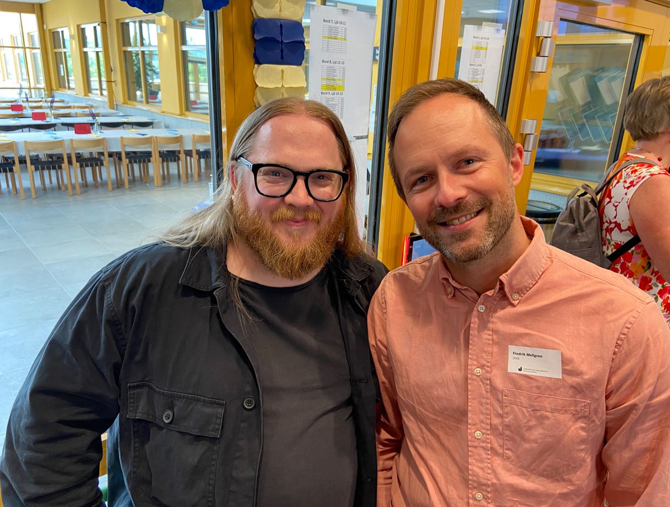 - Det är svinkul men man är ju livrädd för att inte känna igen folk, så det är bra att vi har namnlappar, säger han och skrattar.
