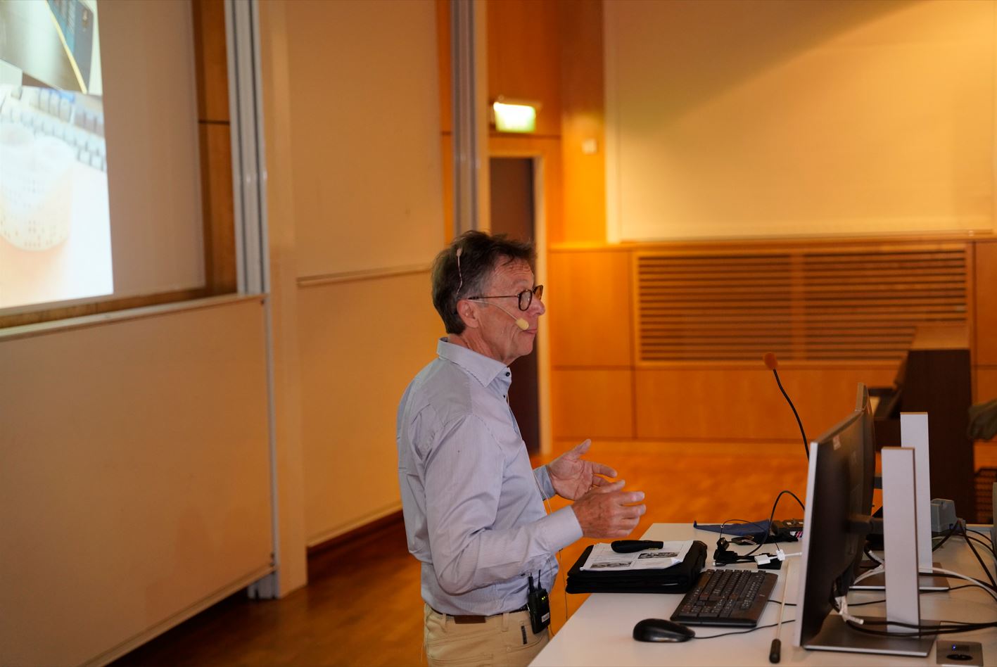 Förutom mingel och middag stod ett antal föreläsningar på schemat. En av föreläsarna var den numera pensionerade ljusdesignläraren Lasse Vegehall.