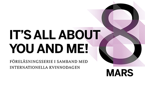 The lecture series It’s all about you and me! will take place over three days, from 7-9 March, at Jönköping University. Five guest lecturers from Jönköping University, the Soroptomist Club, RealStars, Länsstyrelsen and Region Jönköpings Län will be giving lectures on the topics of equality, participation and dignity.