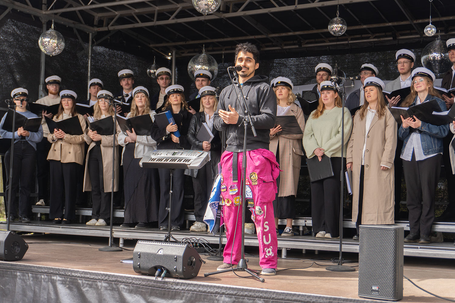 Måns Svensson, the newly appointed president of Jönköping University, delivered his first spring address to the cheering crowd. The celebrations concluded with more choir singing and a speech by Jose Alvarado, president of the Jönköping Student Union. Afterward, the student union hosted activities with competitions, music, and a DJ.