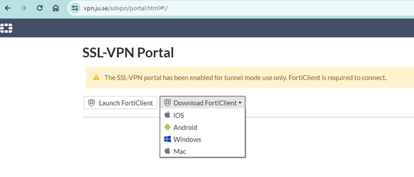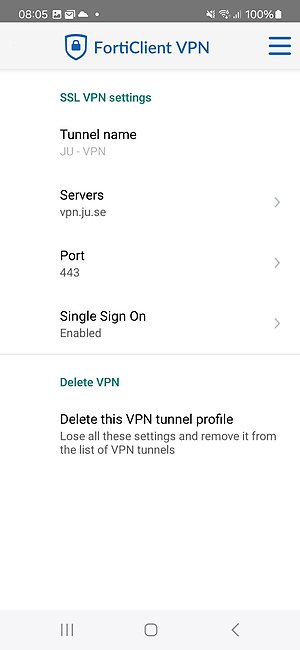 On JU-managed mobile devices, the FortiClient VPN will be deployed automatically.