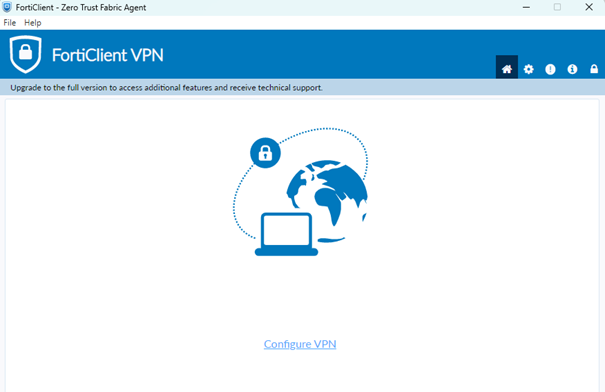 Install the program by following the instructions above. Then open FortiClient. Click on Configure VPN.