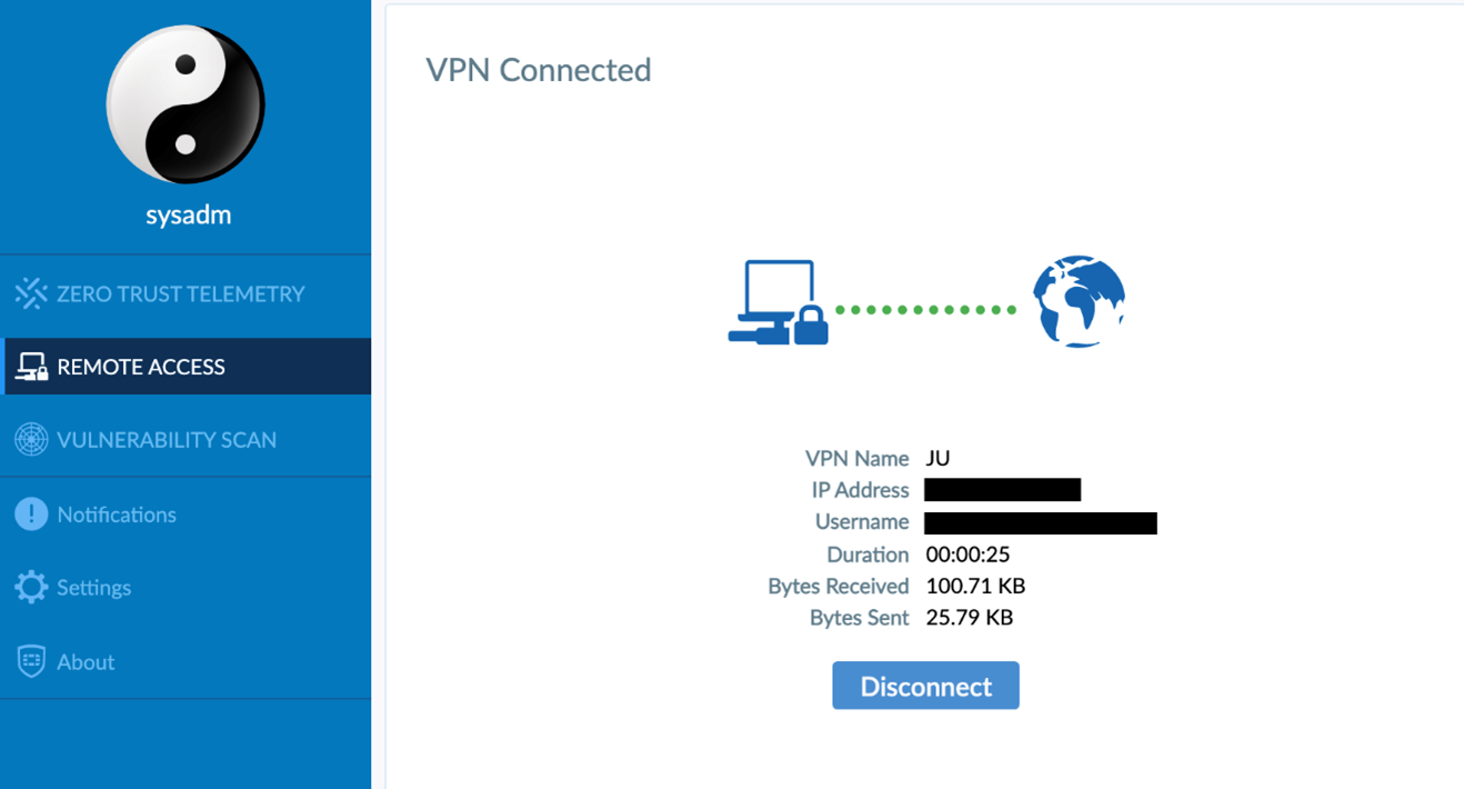 When you are connected it will look like this, click on Disconnect if you no longer want to use the VPN service.
