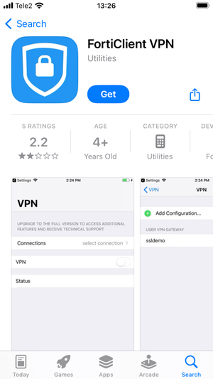 Download the FortiClient VPN app via the AppStore or via the "Play Store" if you are using a private device.