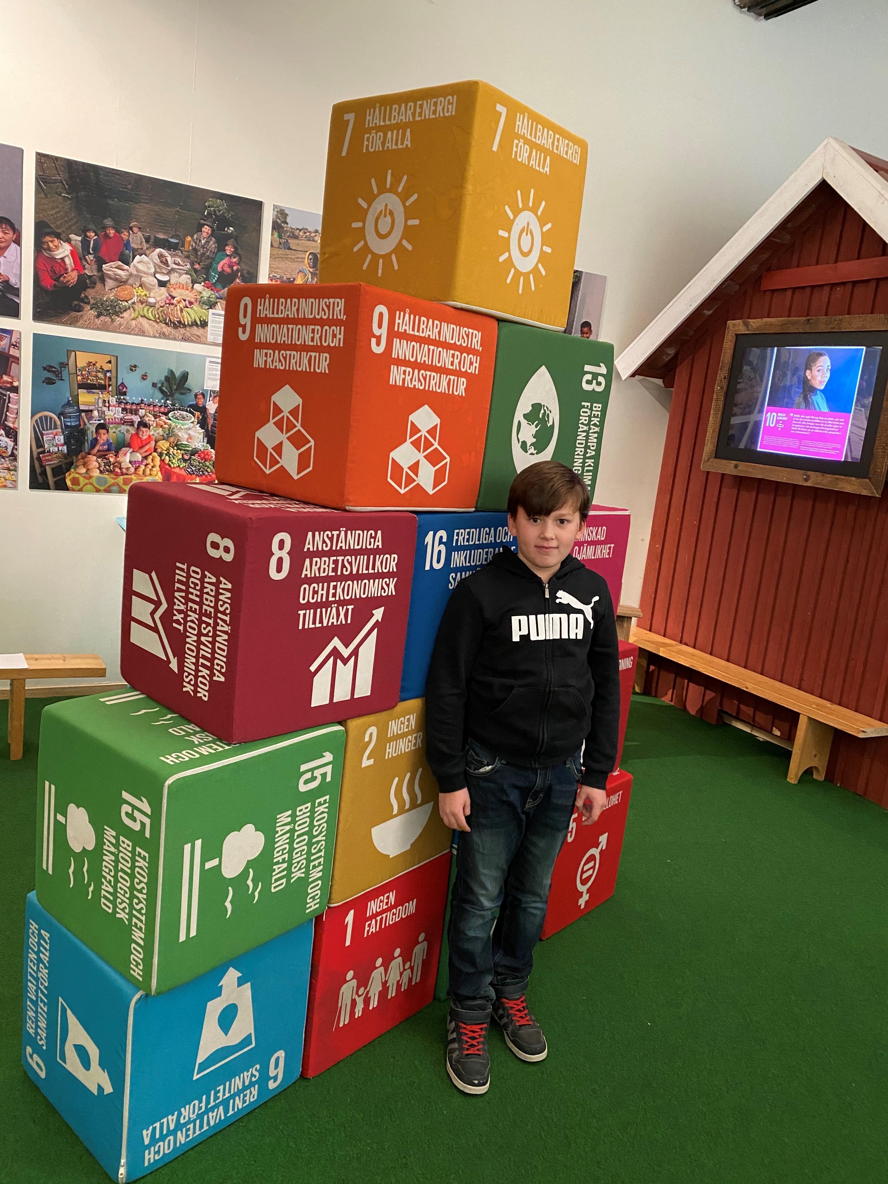 Gustaf Eriksson and his brother tried to build with the big building blocks and talked to one of the CHILD researchers about the Sustainable Development Goals.