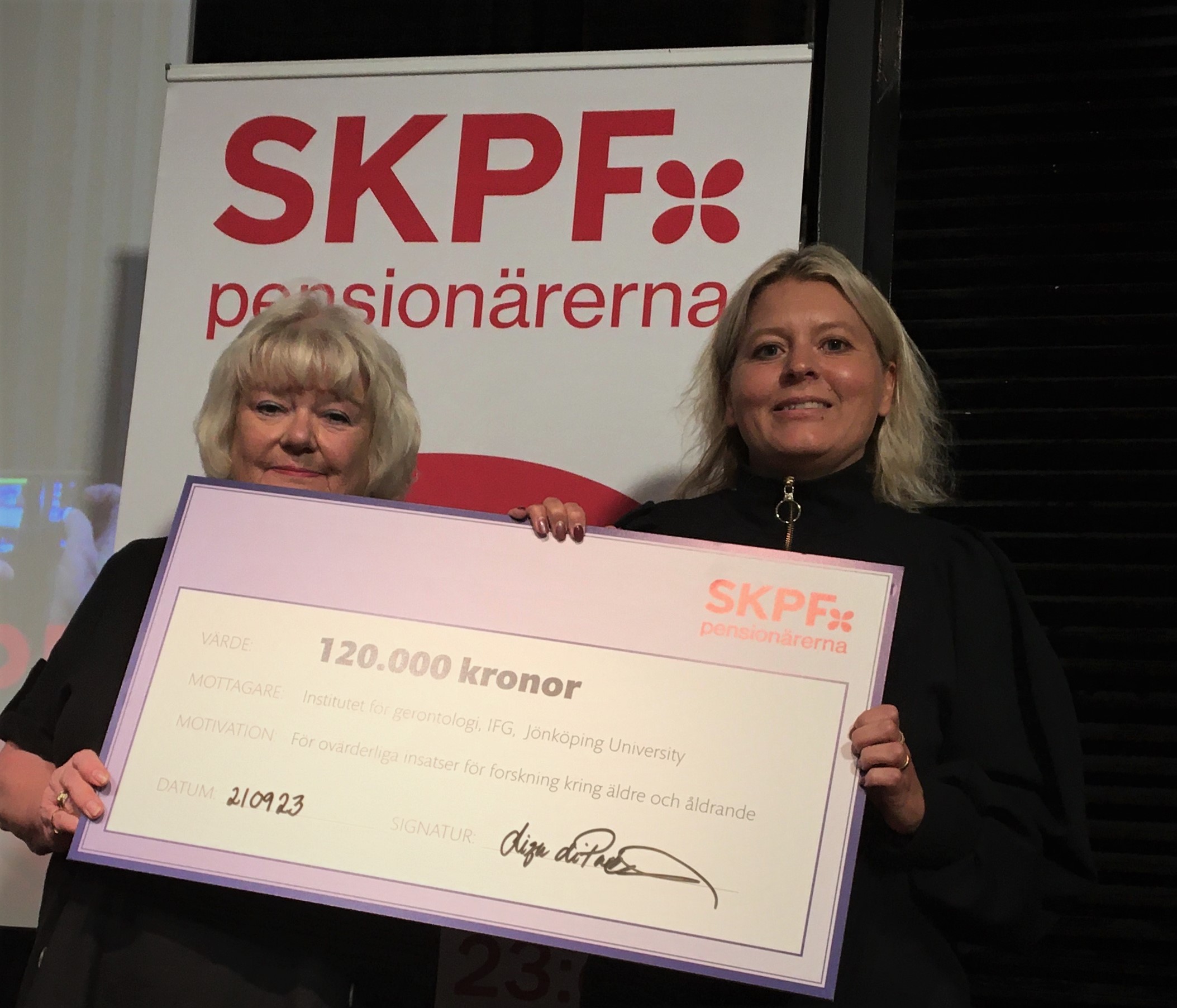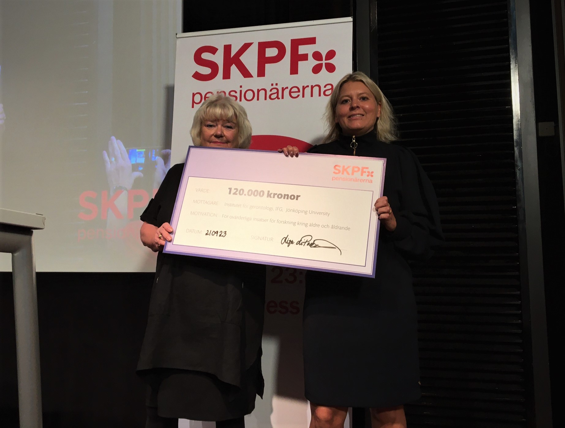 The scholarship was award on 23 September in connection with the SKPF Congress days. IFG was represented by Linda Johansson, associate professor in gerontology and head of department at the Institute of Gerontology.