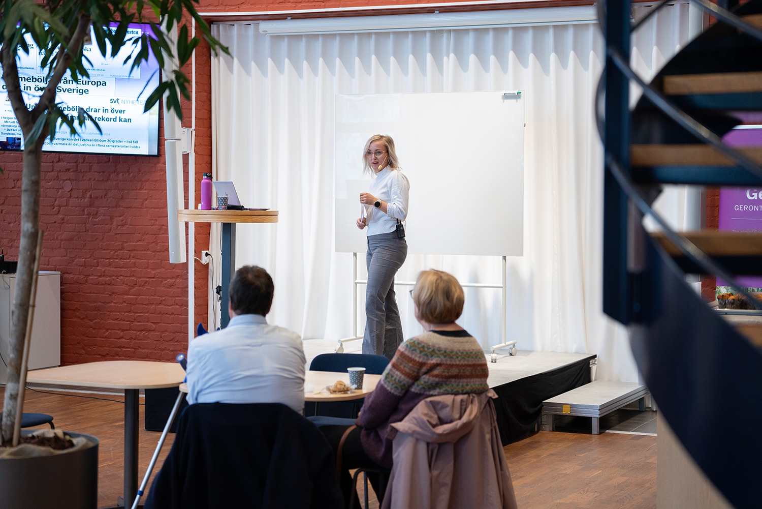 Johanna Johansson, PhD student at the School of Health and Welfare, talked about the HEAT project and the concept of good and bad places in the city during heatwaves. She presented this from the perspective of seniors themselves, using short films they recorded with iPads. HEAT is a collaboration between four Swedish universities and focuses on urban planning for an aging population in a warmer climate.