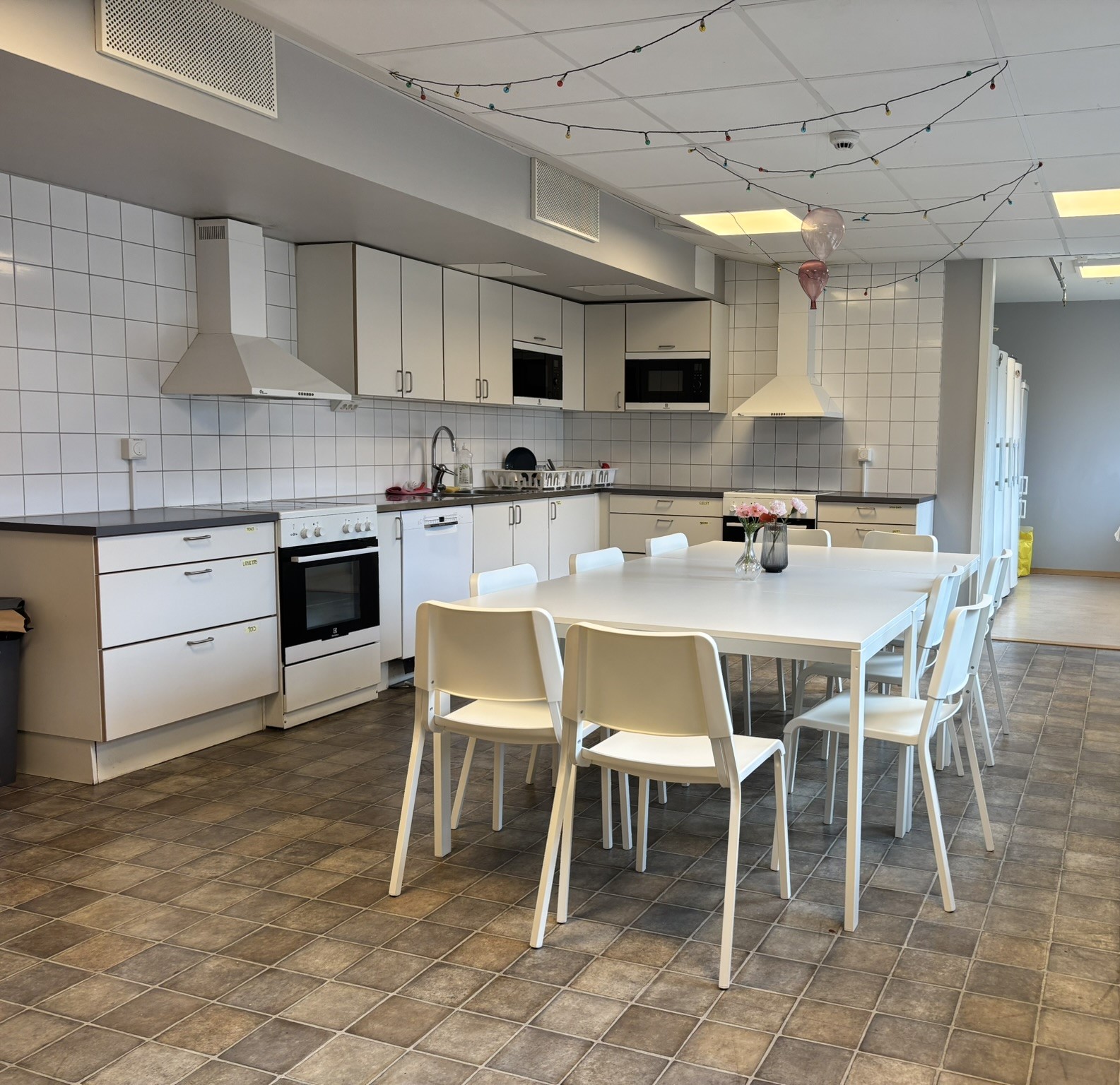 Stovetop, oven, a fridge and a freezer. Shelves and cupboards where the students can store their food. Basic cutlery is provided. | |