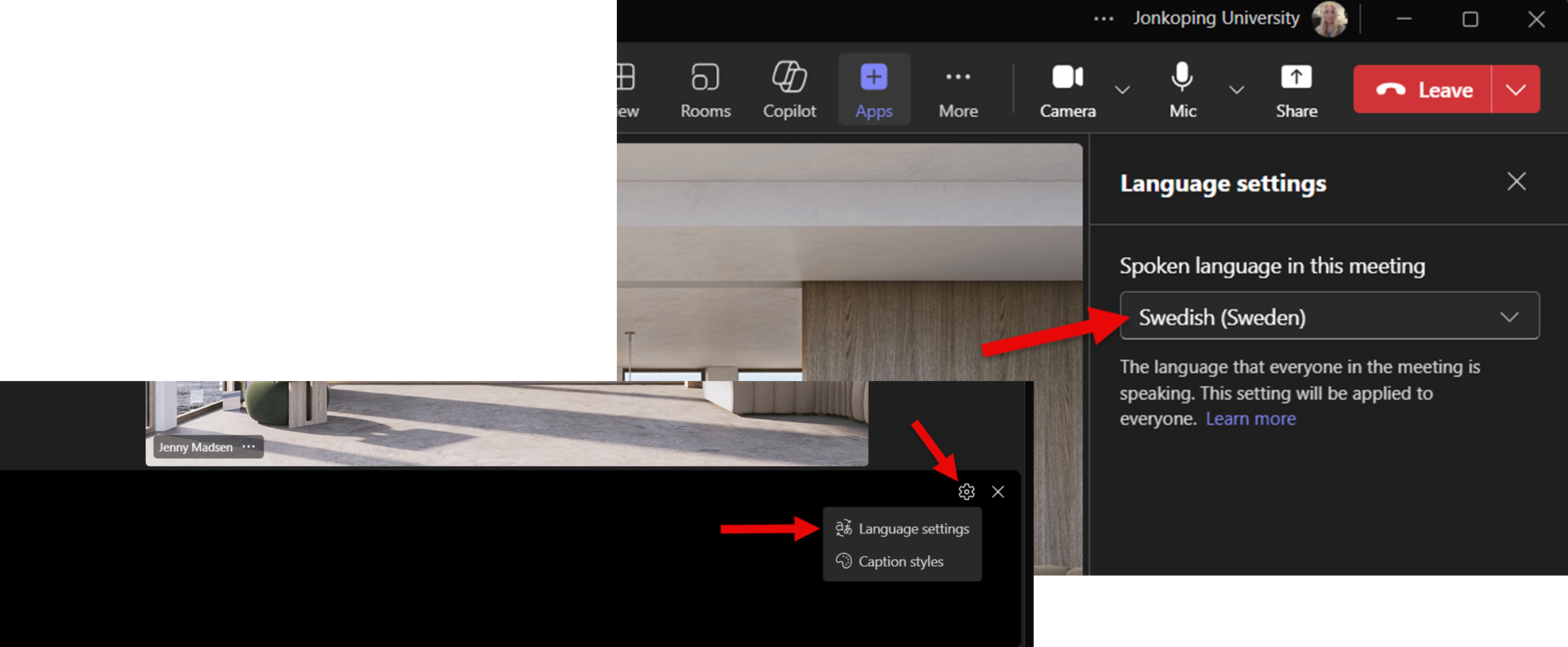 Ändra talat språk i ett Teamsmöte