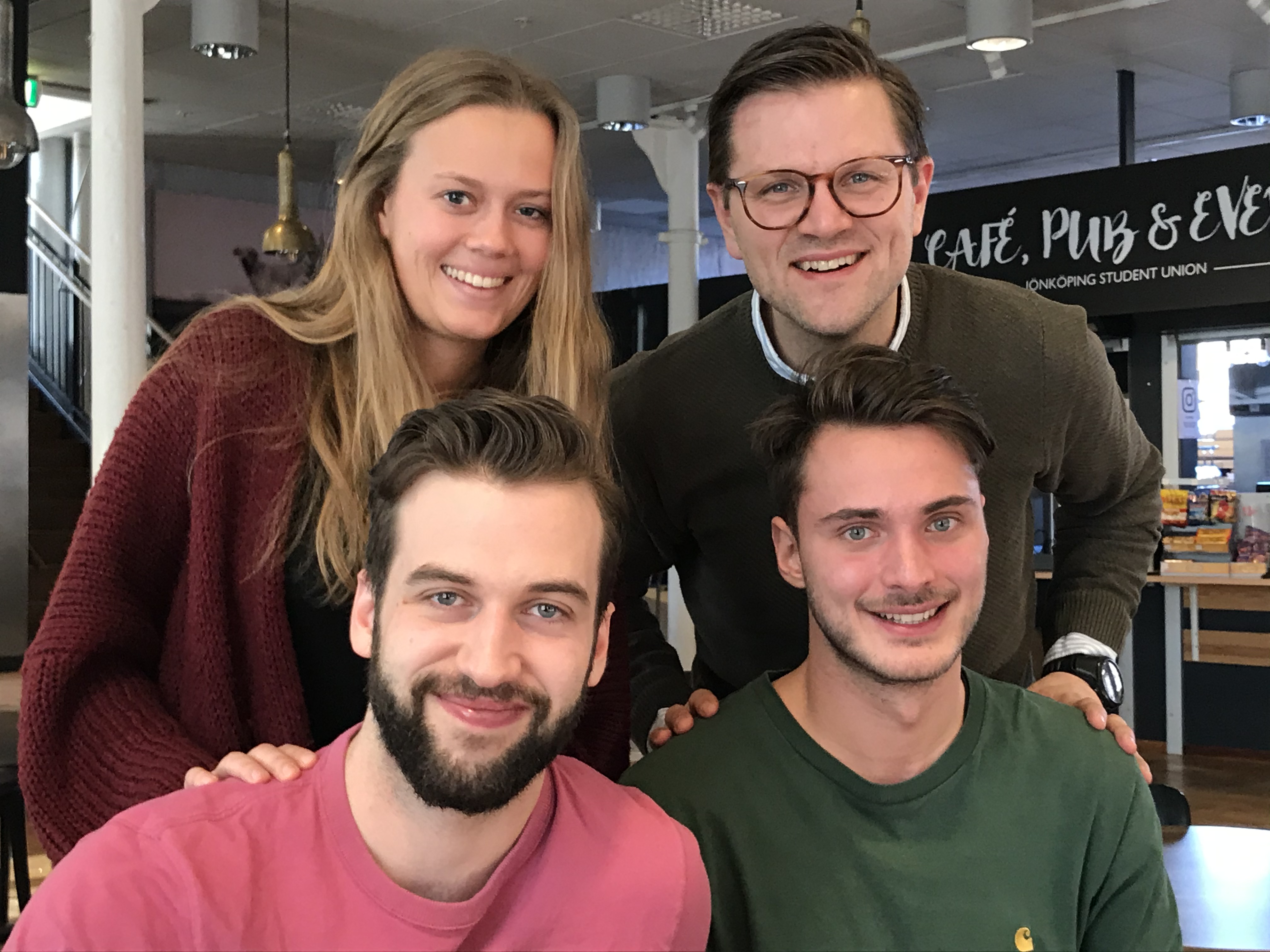 Hon och Sören Pongratz studerar Global Management, respektive Strategic Entrepreneurship, och kommer precis som Niklas från Tyskland. Båda två har varit med i gruppen från början. De hade gärna erbjudit samma hjälp i Tyskland, men eftersom de befinner sig i Jönköping tycker de det känns naturligt att göra en insats här.