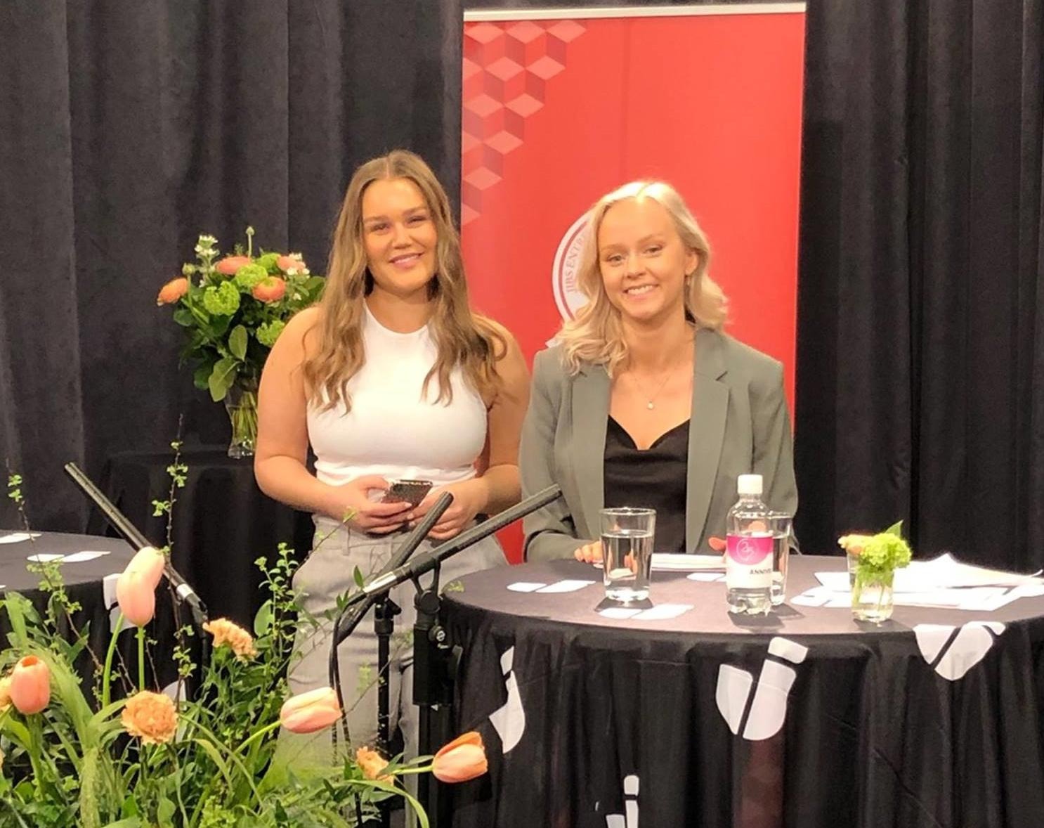 Elvira Sandberg och Tindra Falk var projektledaren för JIBS Entrepreneurship Challenge och programledare för den livesända finalen.