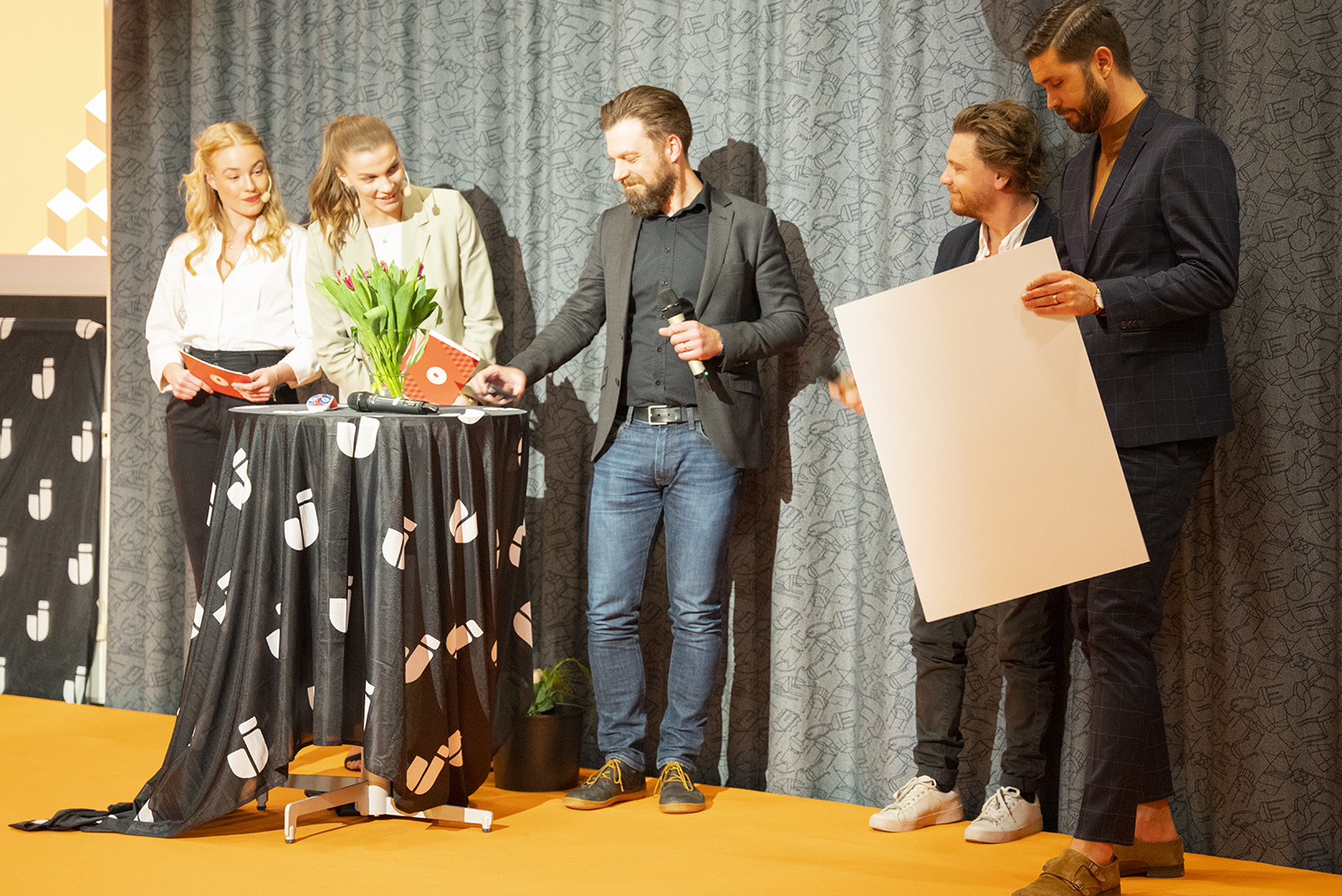De fyra medlemmarna i det vinnande laget var naturligtvis mycket lyckliga efter tillkännagivandet.
