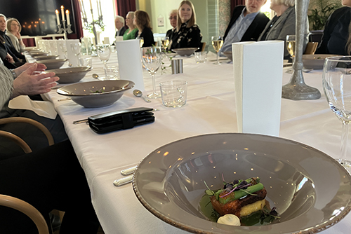 Ceremonin inleddes med lunch tillsammans med årets samt 2020 och 2021 års stipendiater. Därefter berättade Dennis Peterson, representant från stiftelsen om Aktiestinsen Lennart Israelsson, om hur Aktiestinsen donerade miljontals kronor till olika stiftelser varav en till Hälsohögskolan vid Jönköping University (JU). Stipendierna ska användas för att främja utvecklingsarbete och forskning om hälsofrämjande arbete för äldres aktivitet och hälsa inom arbetsterapiområdet. Madeleine Svärd fick sedan motta en check från Kjell Klasson i stiftelsen.