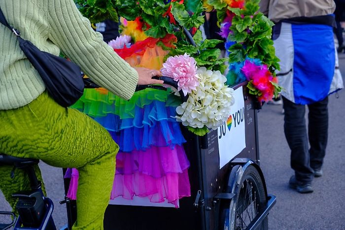 – Rättigheter vi länge tagit för givna är nu hotade och hbtqi-gruppen är särskilt utsatt. Det är självklart för mig att visa solidaritet och stå upp för allas lika rätt till kärlek och rätten att vara sig själv. Jag är väldigt glad för den stora uppslutningen från både personal och studenter, säger Sofia Nodén, biblotekarie på JU:s bibliotek.