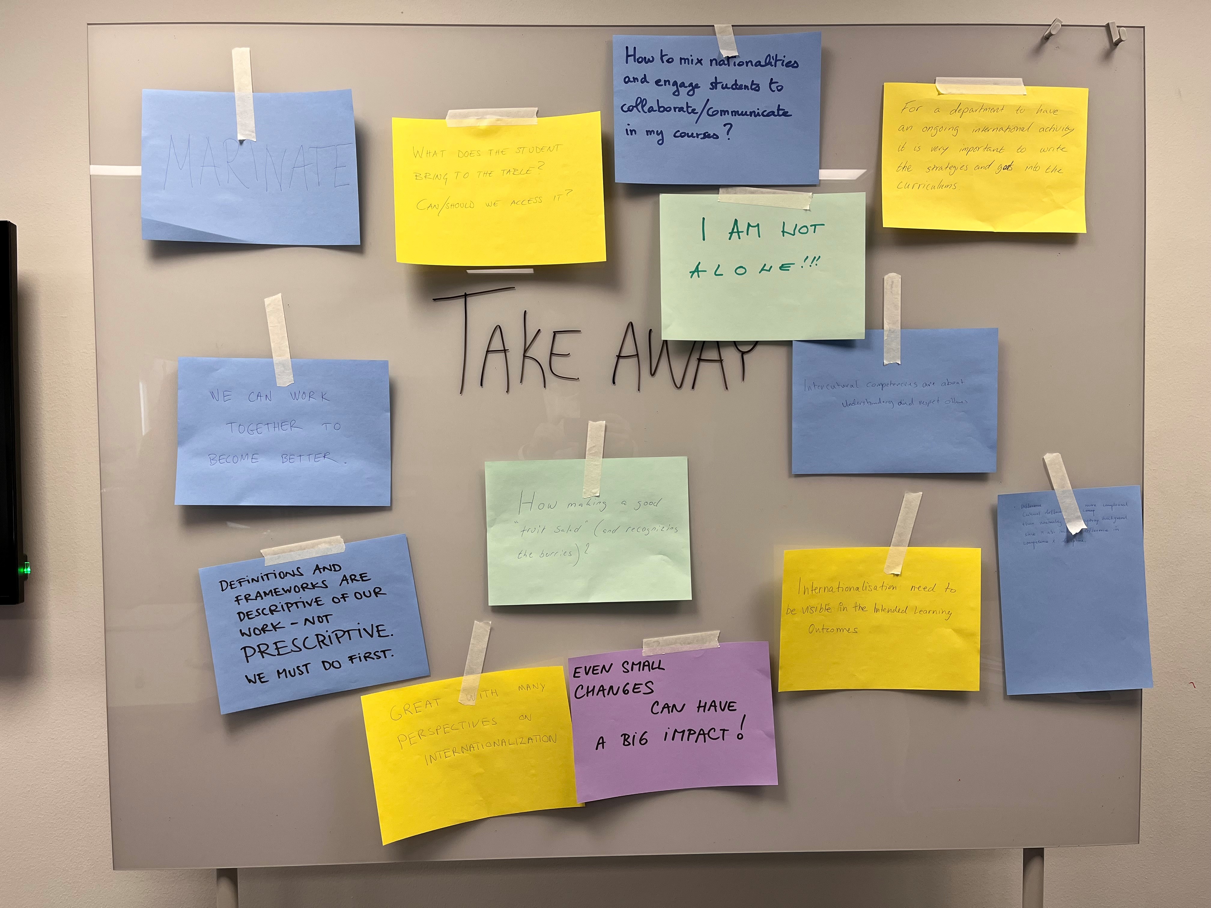 Bild från verkstaden våren 2023, med en del av deltagarnas take-aways från tillfället. Öppna bild jpg, 2.3 MB, öppnas i nytt fönster..
