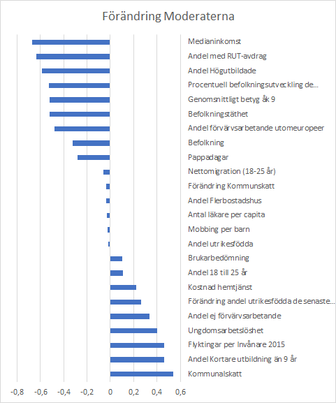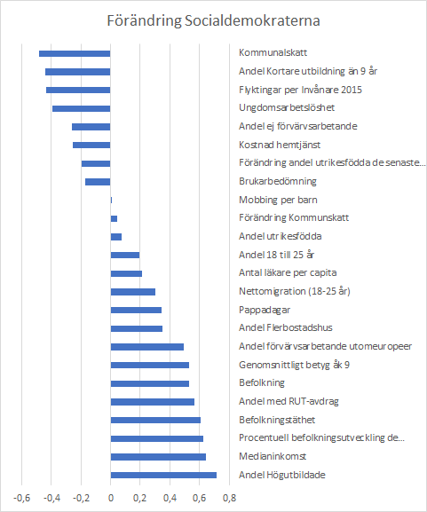 Om vi istället ser på hur dessa faktorer hänger ihop med förändringen sedan valet 2014 så får vi följande figur: