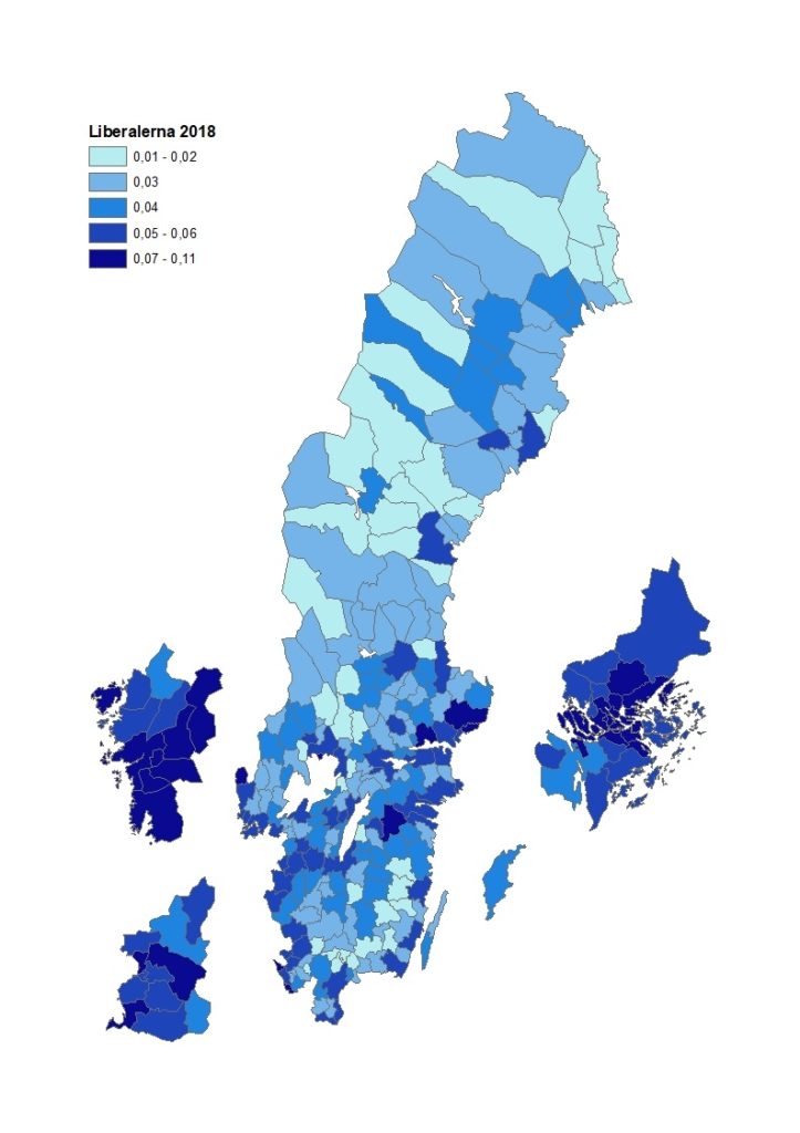 Låt oss nu ta en titt på hur kommunerna röstade på Liberalerna:
