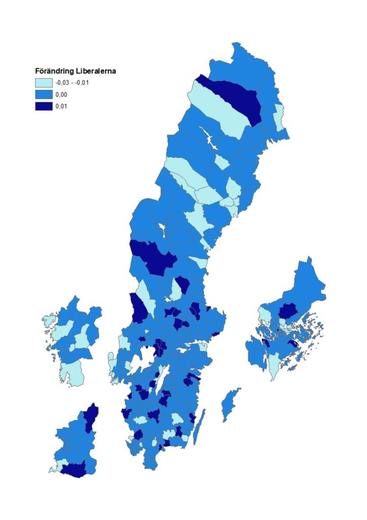 Om vi istället ser till förändringen mellan de två valen för Liberalerna så får vi följande figur: