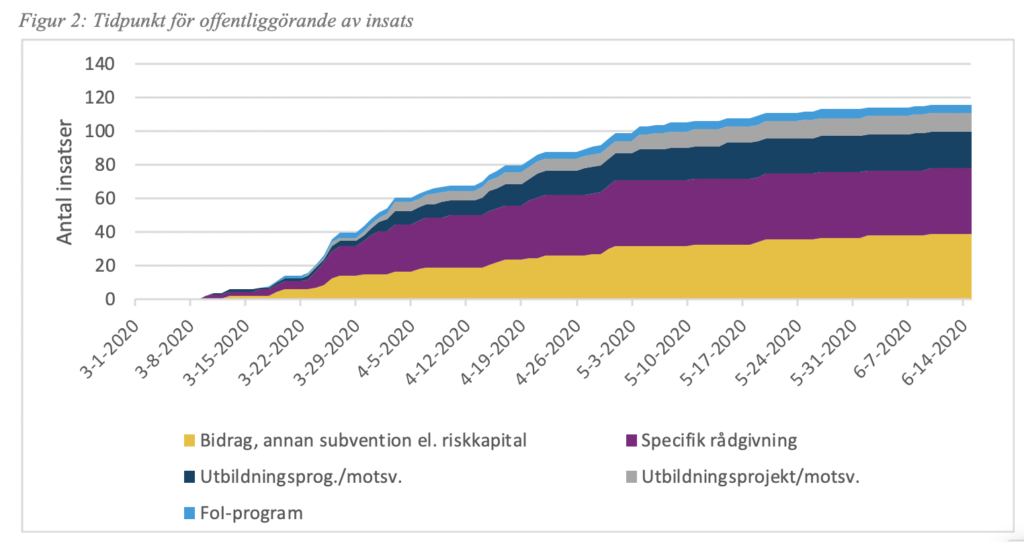 Fokus ligger i den här studien på följande typer av insatser, som i samtliga fall avser nya initiativ i syfte att stödja näringslivet i coronakrisen: