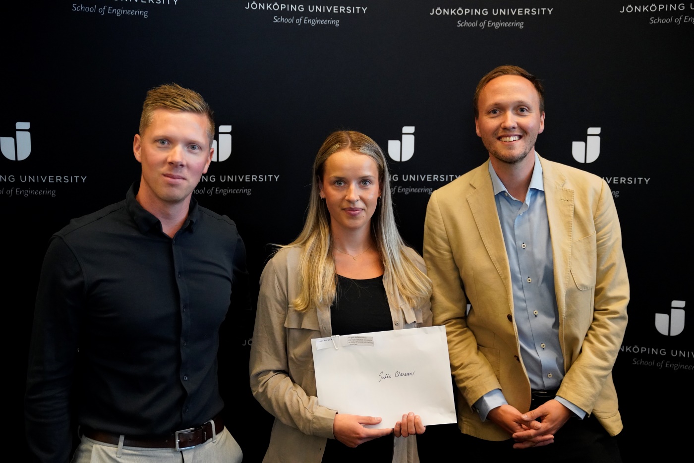 JTH:s stipendium på 10 000 kronor för bästa presentation på Xjobbsmässan 2025 gick till Sandra Jarauta Abadia, som har läst masterprogrammet Product Design. Titeln på hennes exjamensobb är "Carry the Forest: Designing a Bag for Forestry Machine Operators".
