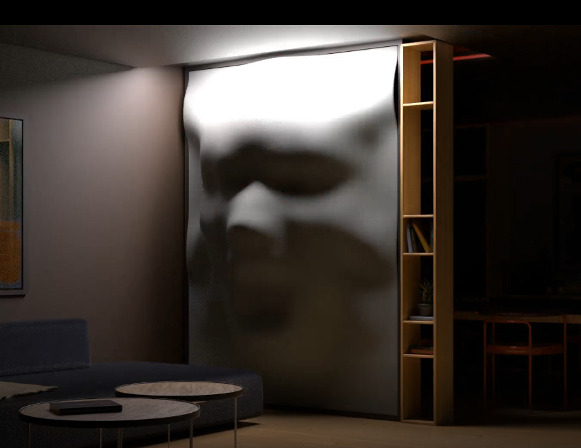 The application of the strategy is the design of a smart product called “Gelo”. Gelo is a ‘smart wall’ concept that uses soft robotic actuators to transform its surface to adapt to changing light conditions, improve room acoustics, and produce dynamic visual displays.