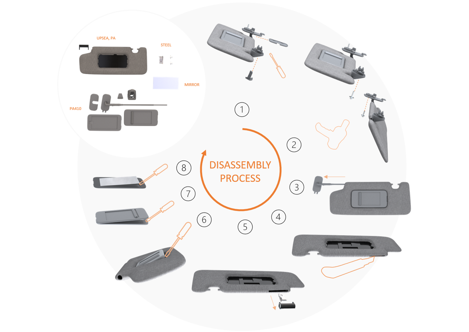 The final result is a conceptual sun visor that is well adapted for C2C. The concept has focus on sustainable and safe materials, functionalities for circularity, with an extra focus on a simple disassembly process.