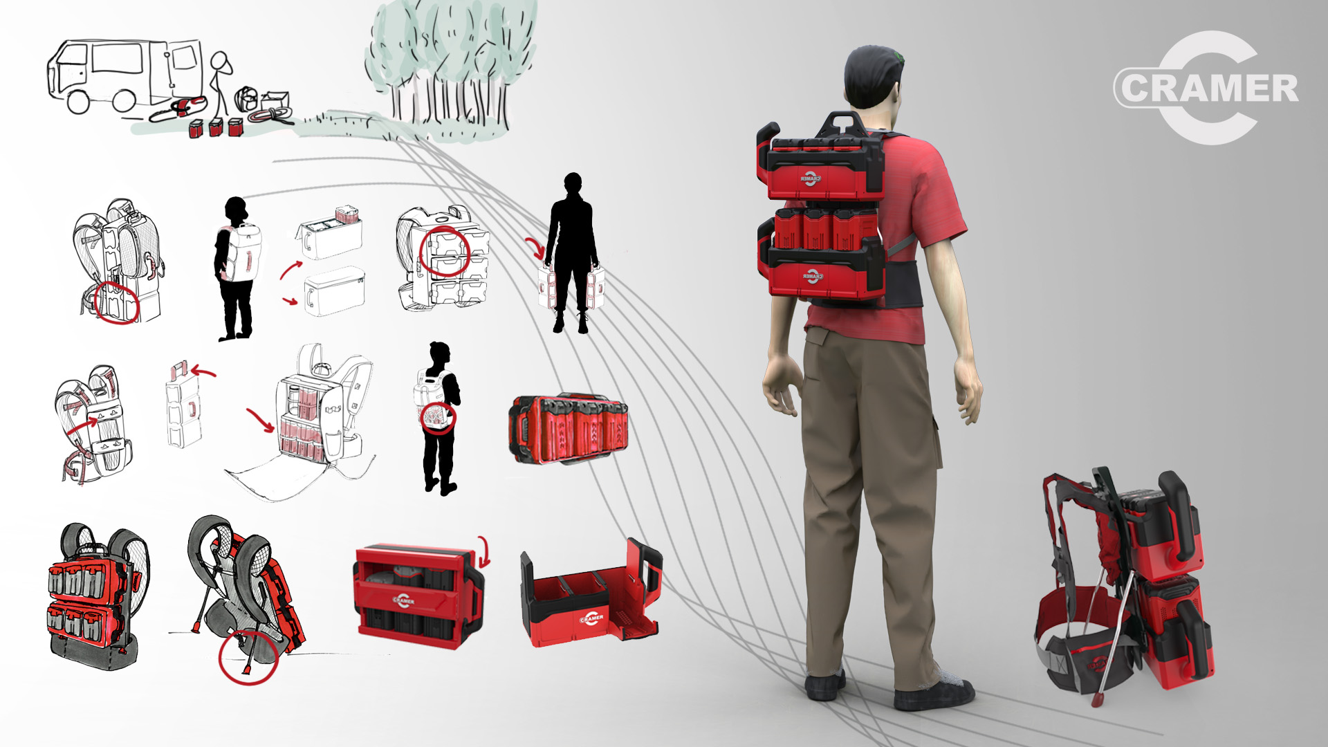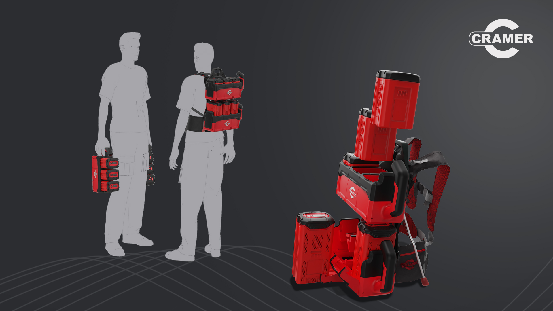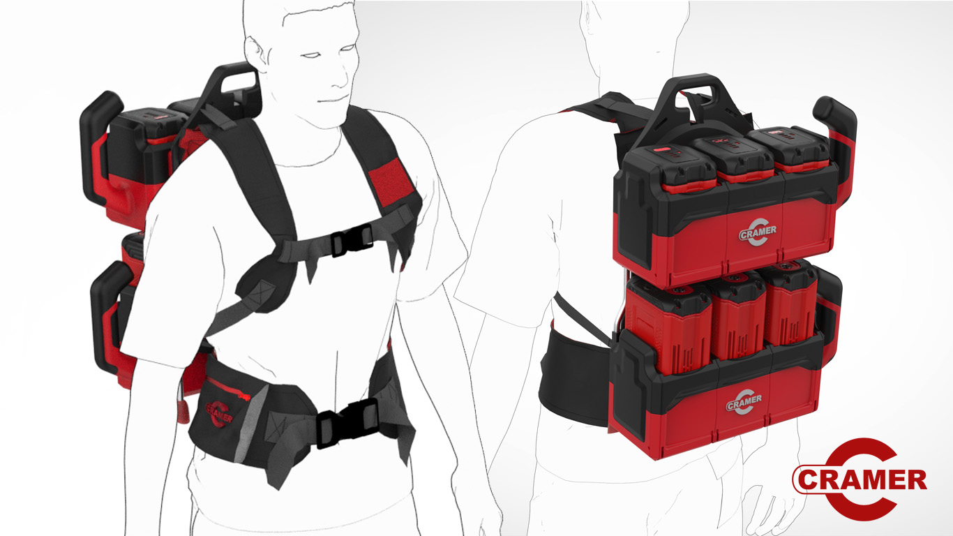 Cramer specializes in battery powered tools. Some professional jobs require the use of several batteries. This thesis designed a product to allow the users to comfortably transport up to 6 batteries along with their equipment.