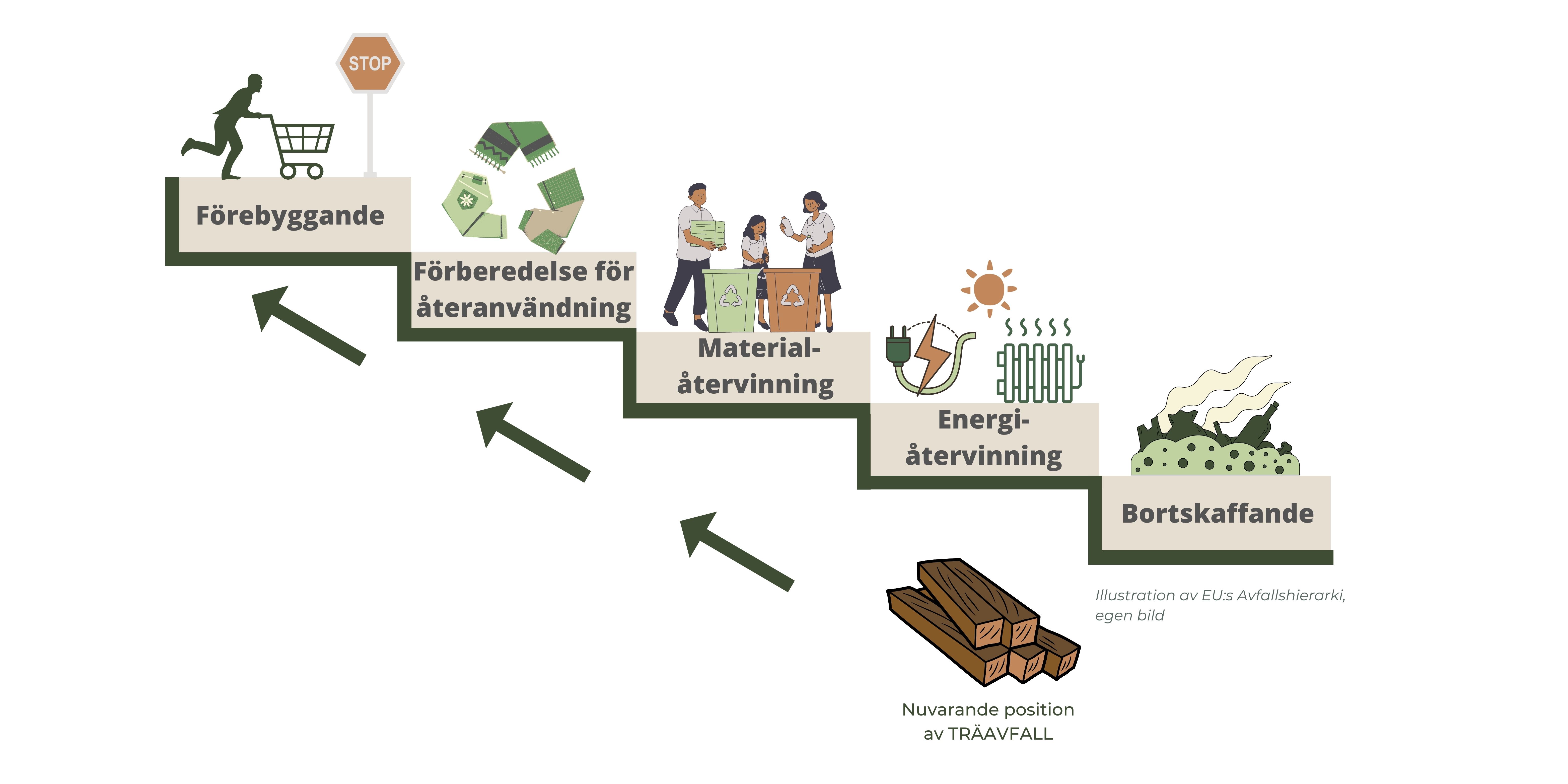 En studie om hinder och möjligheter för att lyfta placeringen av obehandlat träavfall i avfallshierarkin på kommunal nivå.