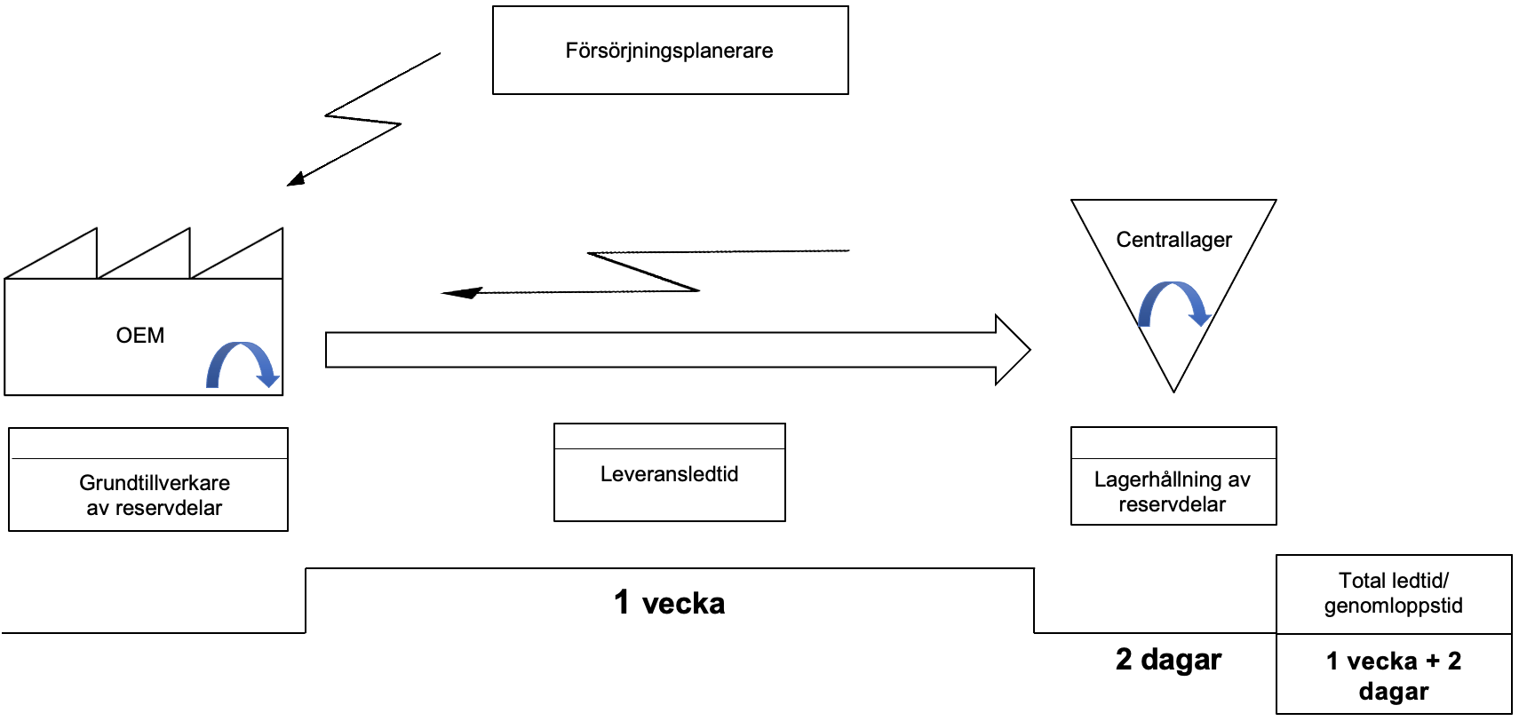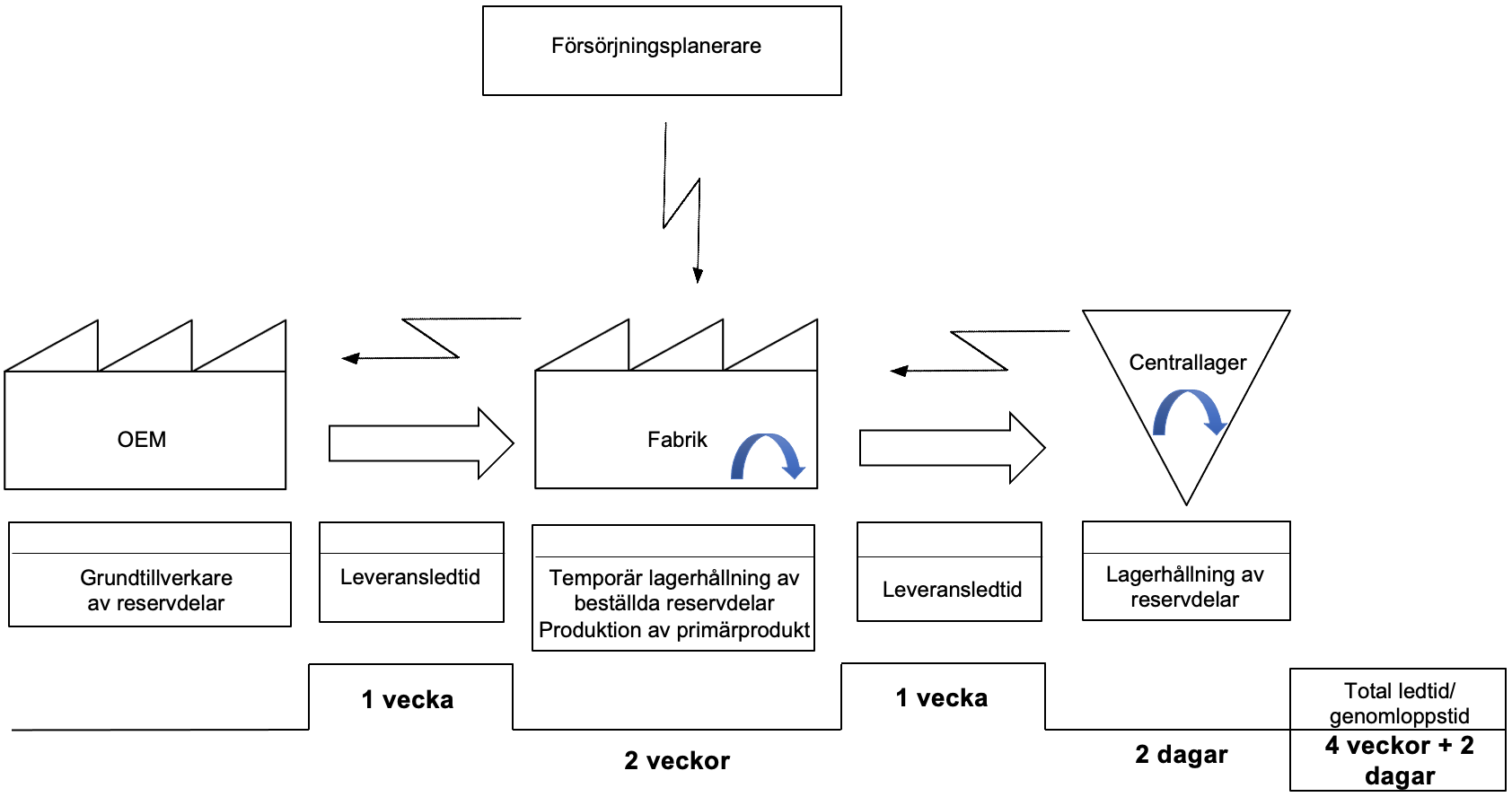 Studiens syftar därför till att utforma en arbetsprocess för effektivare materialflöde av reservdelar mellan OEM och centrallager för tillverkande företag. För att uppnå detta syfte formulerades tre frågeställningar: Vilka effektivitetsvariabler påverkar materialflödet av reservdelar? Hur påverkar effektivitetsvariabler materialflödet av reservdelar? Vilka steg ska en arbetsprocess för effektivisering av tillverkande företags materialflöde av reservdelar innehålla?