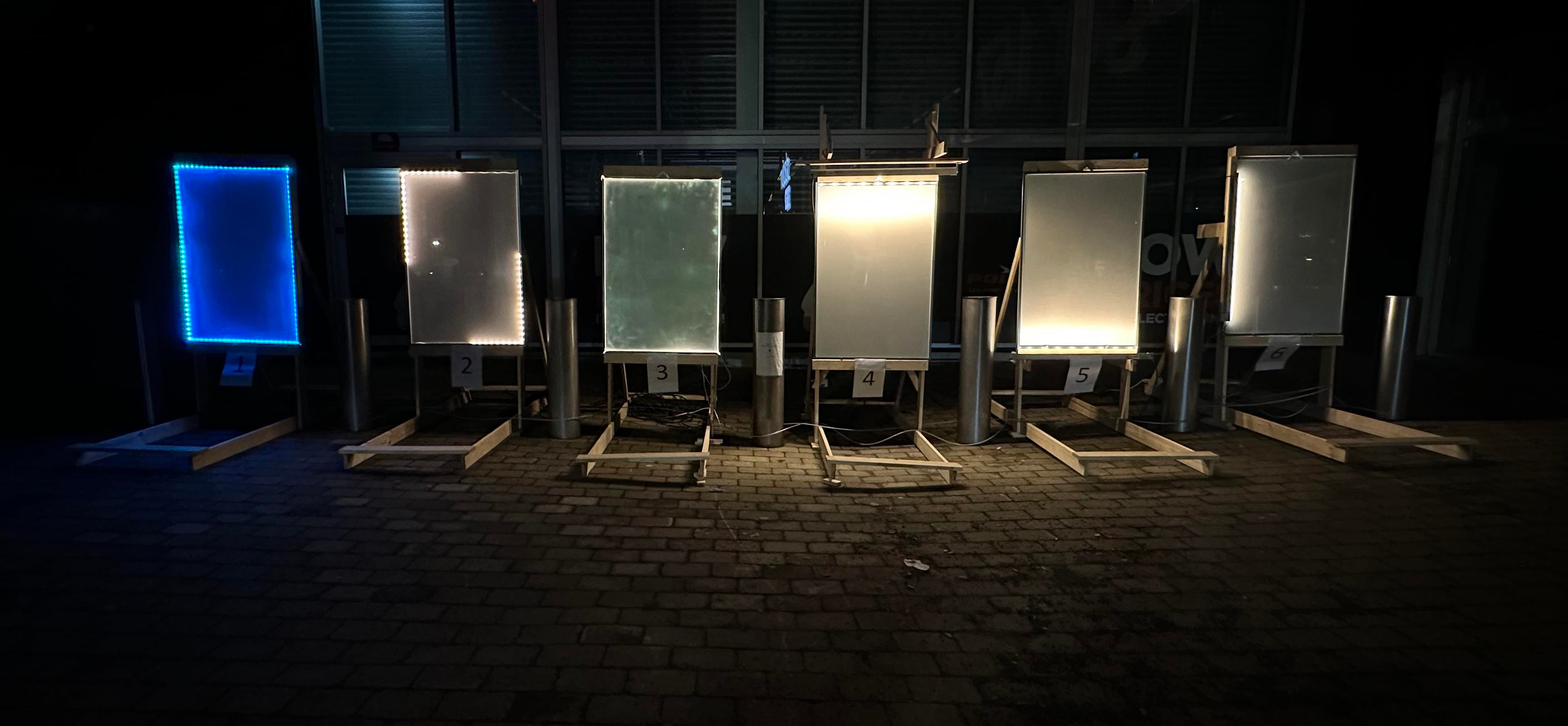 - Vilka utformningar av fasadbelysning i kombination med kulör är mest tilltalande i industri- och handelsområden med opaka glasfasader?