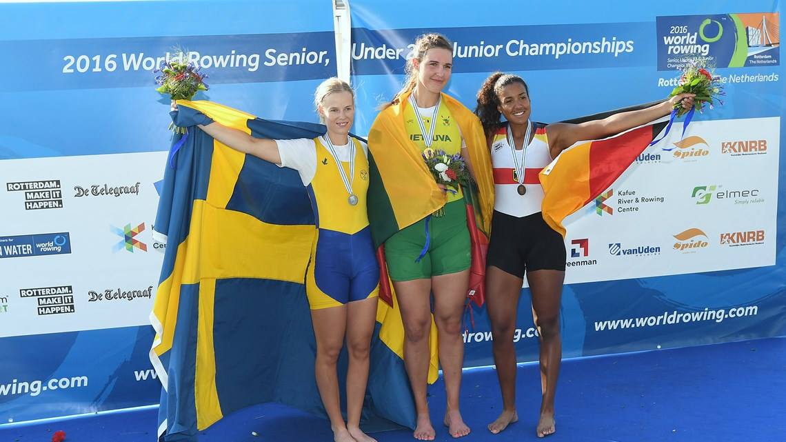 JU-studenten Lovisa Claesson kammade hem en silvermedalj från världsmästerskapen i rodd, och flera medtävlande studenter visade framfötterna.