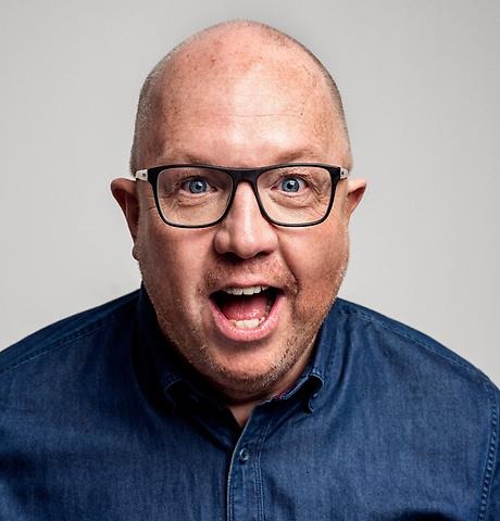 Studentpastorn John Ahlström möter komikern i ett samtal om livets små och stora frågor fredag den 8 november klockan 12.00 i Högskolebiblioteket.