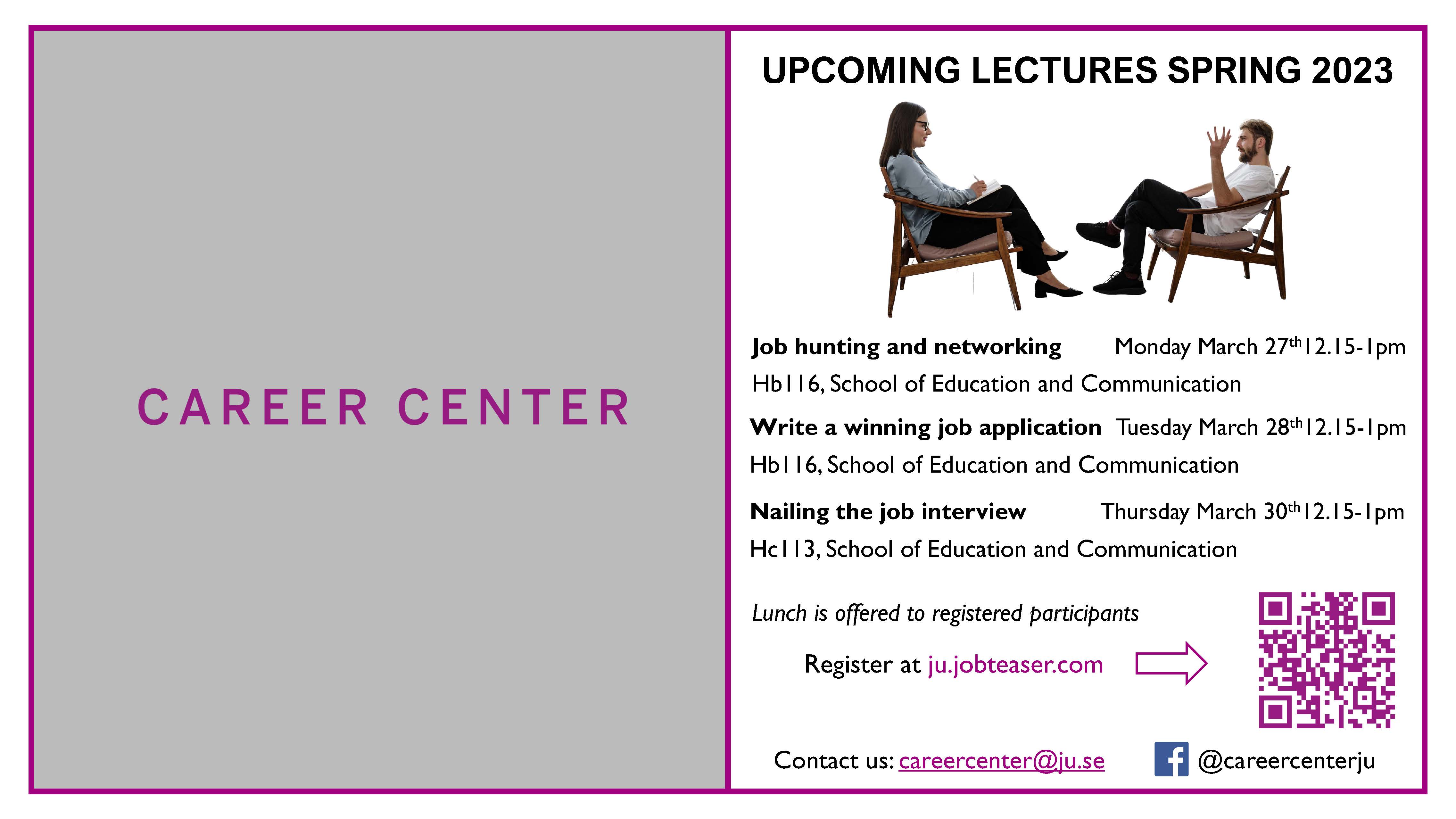 Behöver hjälp med ditt CV och anställningsintervjun? Missa då inte de kommande tre föreläsningar som Jönköping Universitys Career Center anordnar som handlar om hela ansökningsprocessen – från jobbletande fram till dess att du blir inbjuden till jobbintervjun.