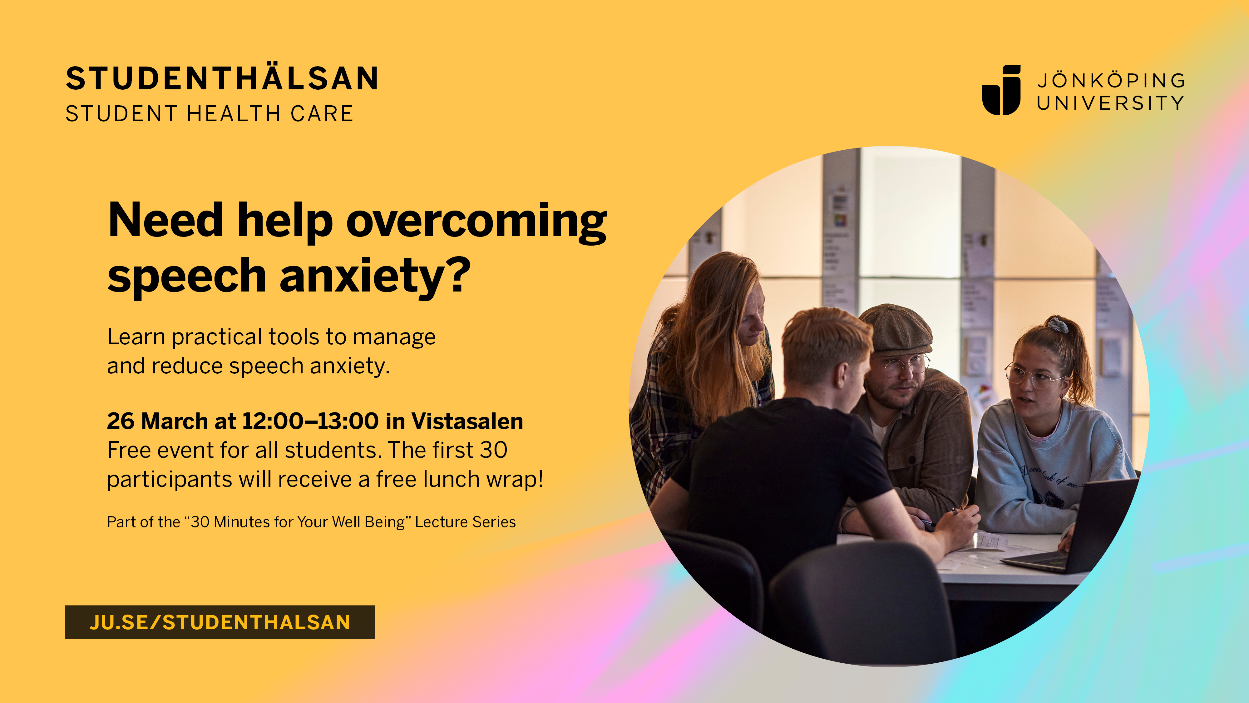 Studenthälsan bjuder in till en visning av en digitalföreläsning 26 mars kl. 12-13 i Hb220. De första 30 på plats bjuds på lunch! Föreläsningen hålls på engelska.