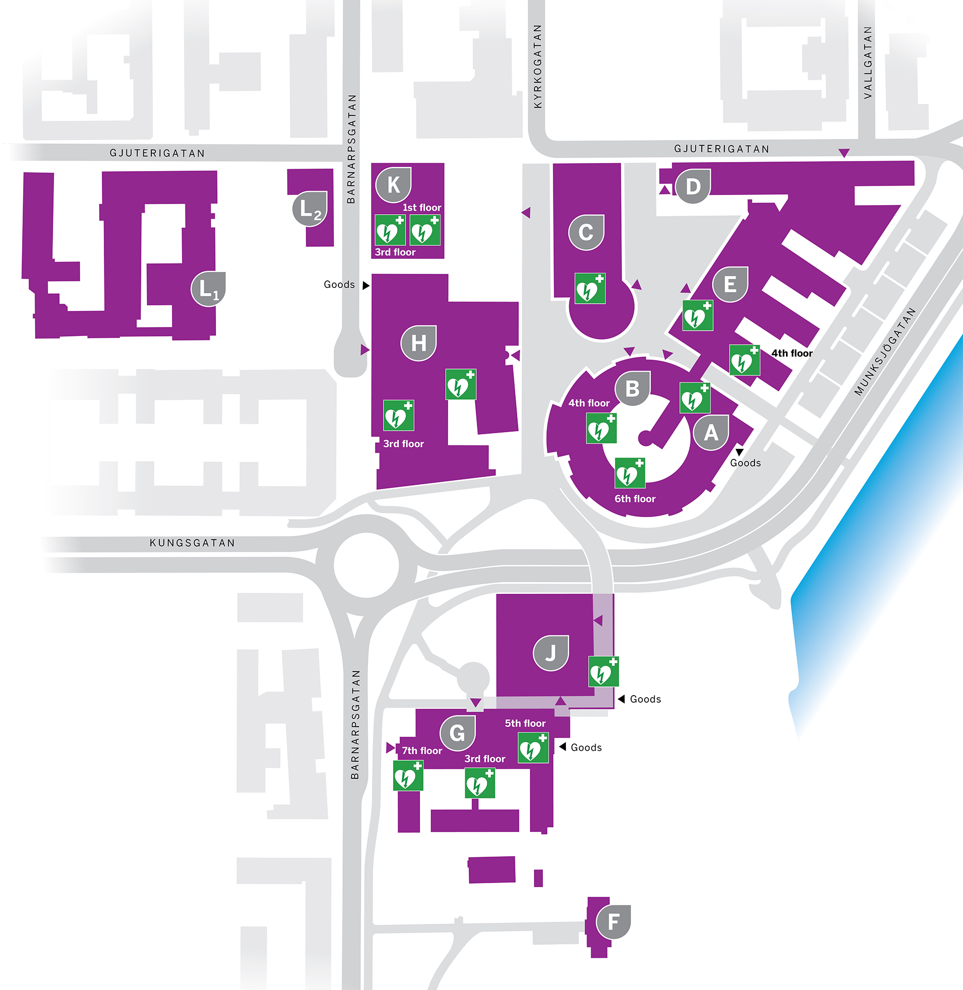 Students and staff staying in all other premises, i.e. School of Education and Communication, Jönköping International Business School, School of Engineering, House A, House K, Students' House and the library, should assemble at the bicycle parking area in front of House K.