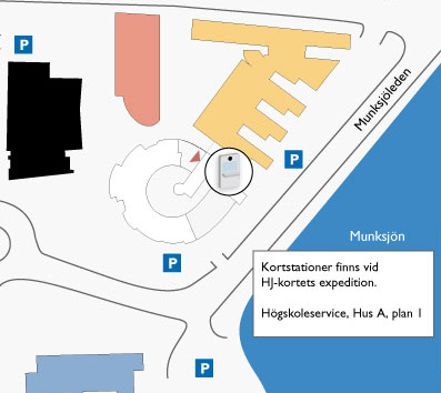Du kan också ta ett foto i någon av dom kortstationerna som finns på campus, se karta till höger. se skiss över stationernas placering jpg, 92 kB, öppnas i nytt fönster..